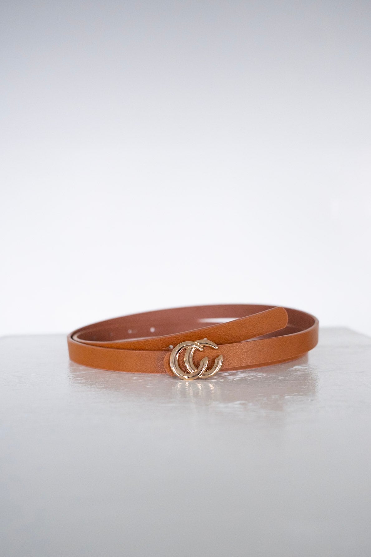 Thin Belt with Gold Accent in Cognac