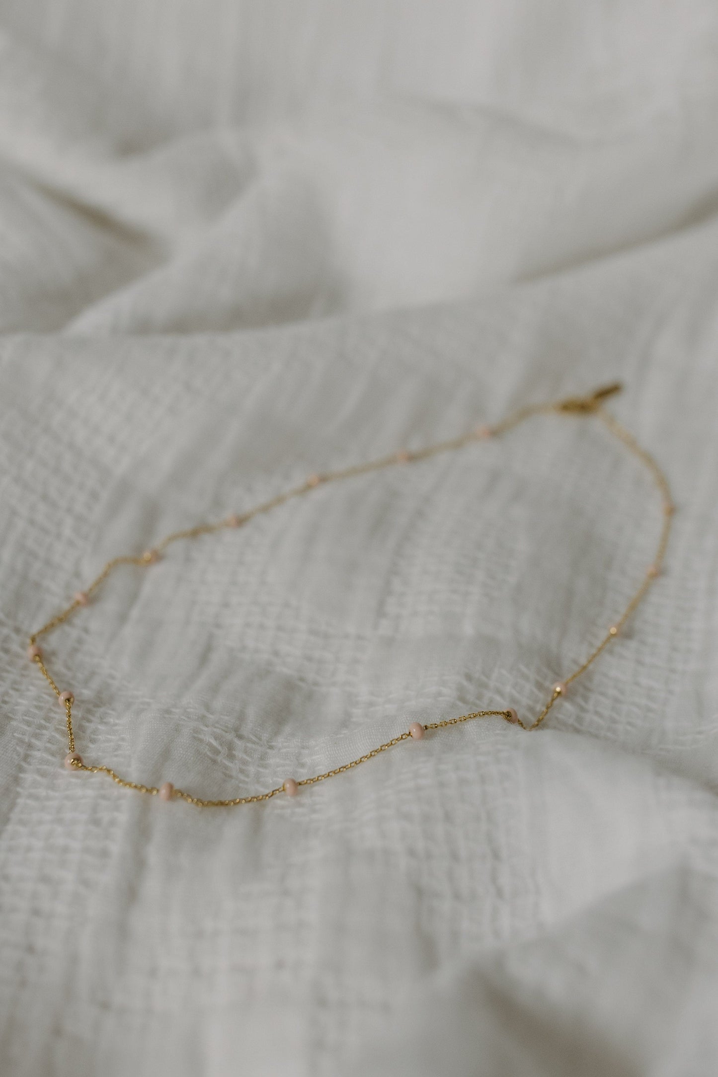 Add AVA PETAL PINK ENAMEL GOLD NECKLACE to the cart