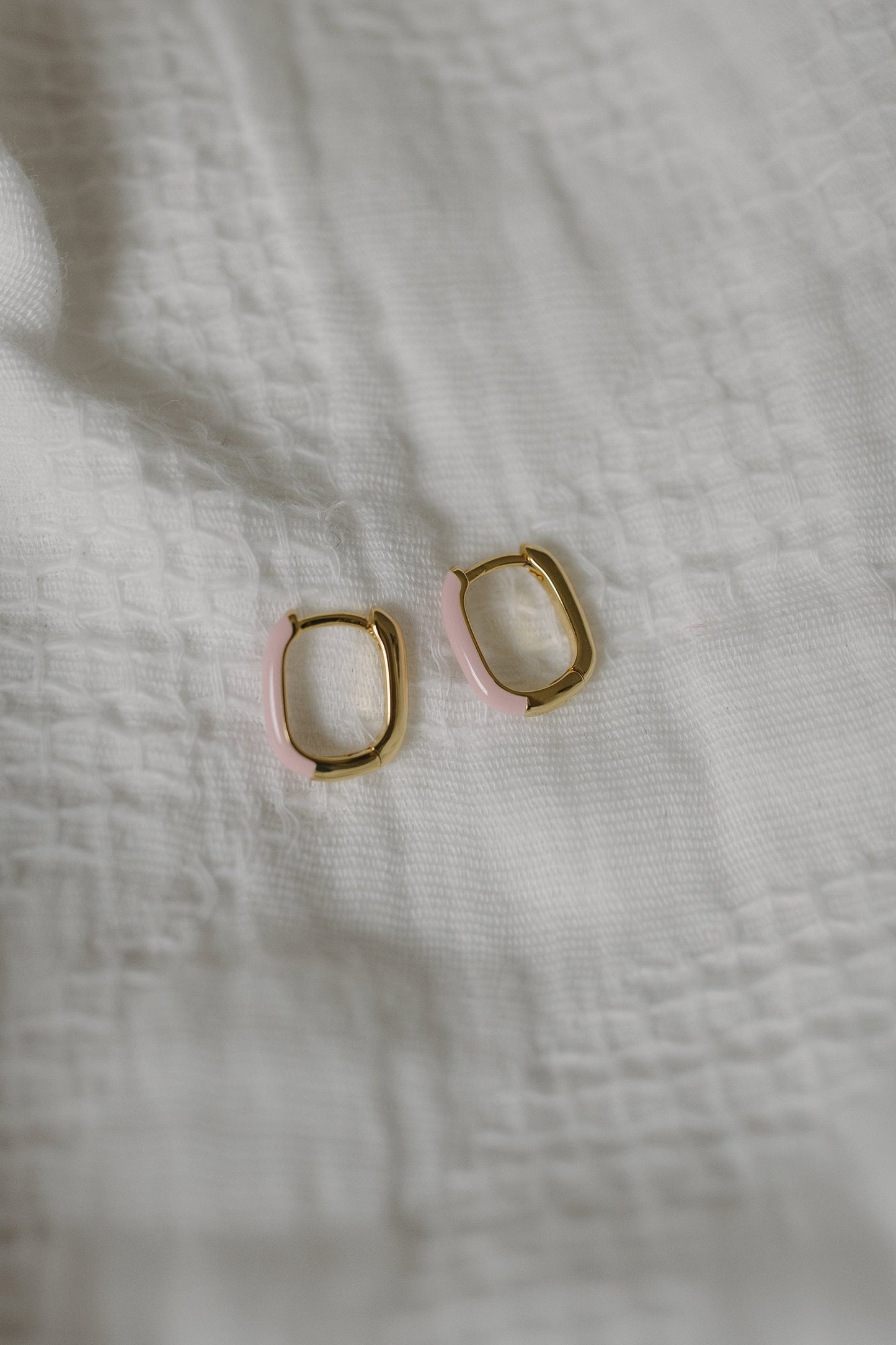 Add SIENNA PETAL PINK ENAMEL HOOPS to the cart