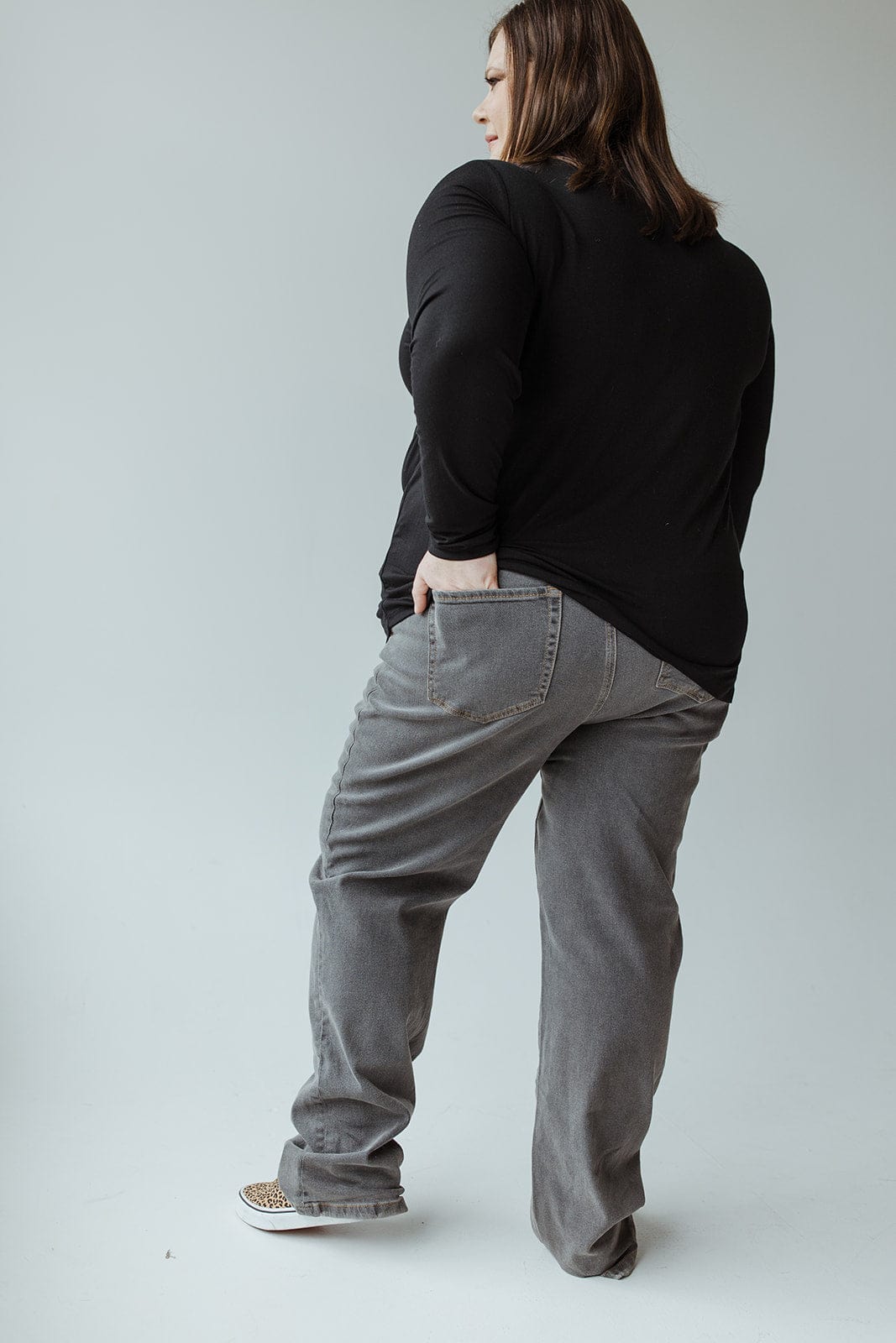 We know skinny jeans will be a wardrobe staple for years to come, but you must have at least one pair of straight-leg jeans. This is the pair you'll want to invest in! They have a high rise at 13 inches, making them mom jeans. Great stretchy fabric that isn't distressed with button and zipper closure. The inseam is 29 inches. Fits slightly small we recommend sizing up, but they are incredibly comfortable. Pick up these jeans and you won't be disappointed!
