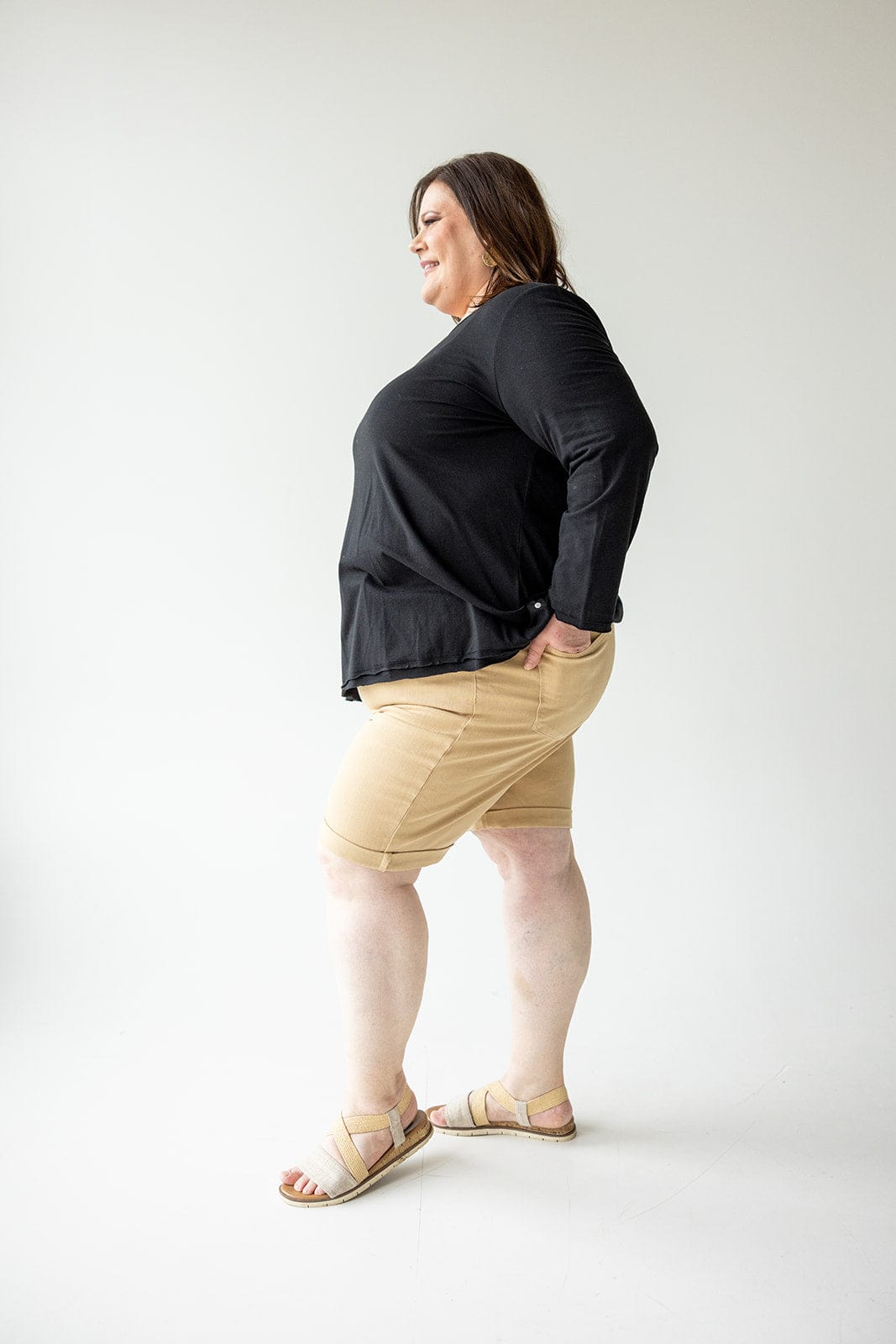 JUDY BLUE MID-RISE ROLLED CUFF KHAKI BERMUDA SHORTS