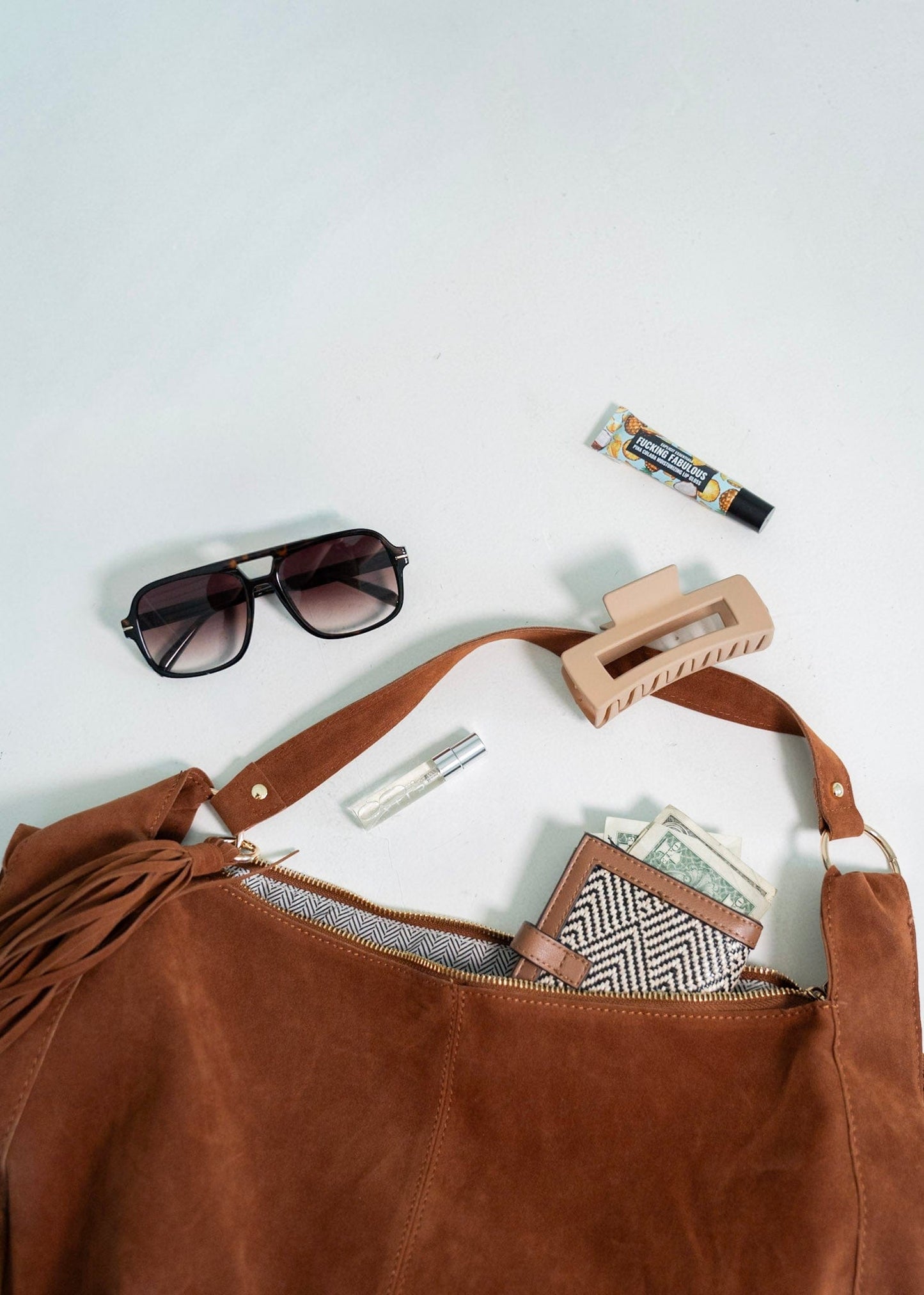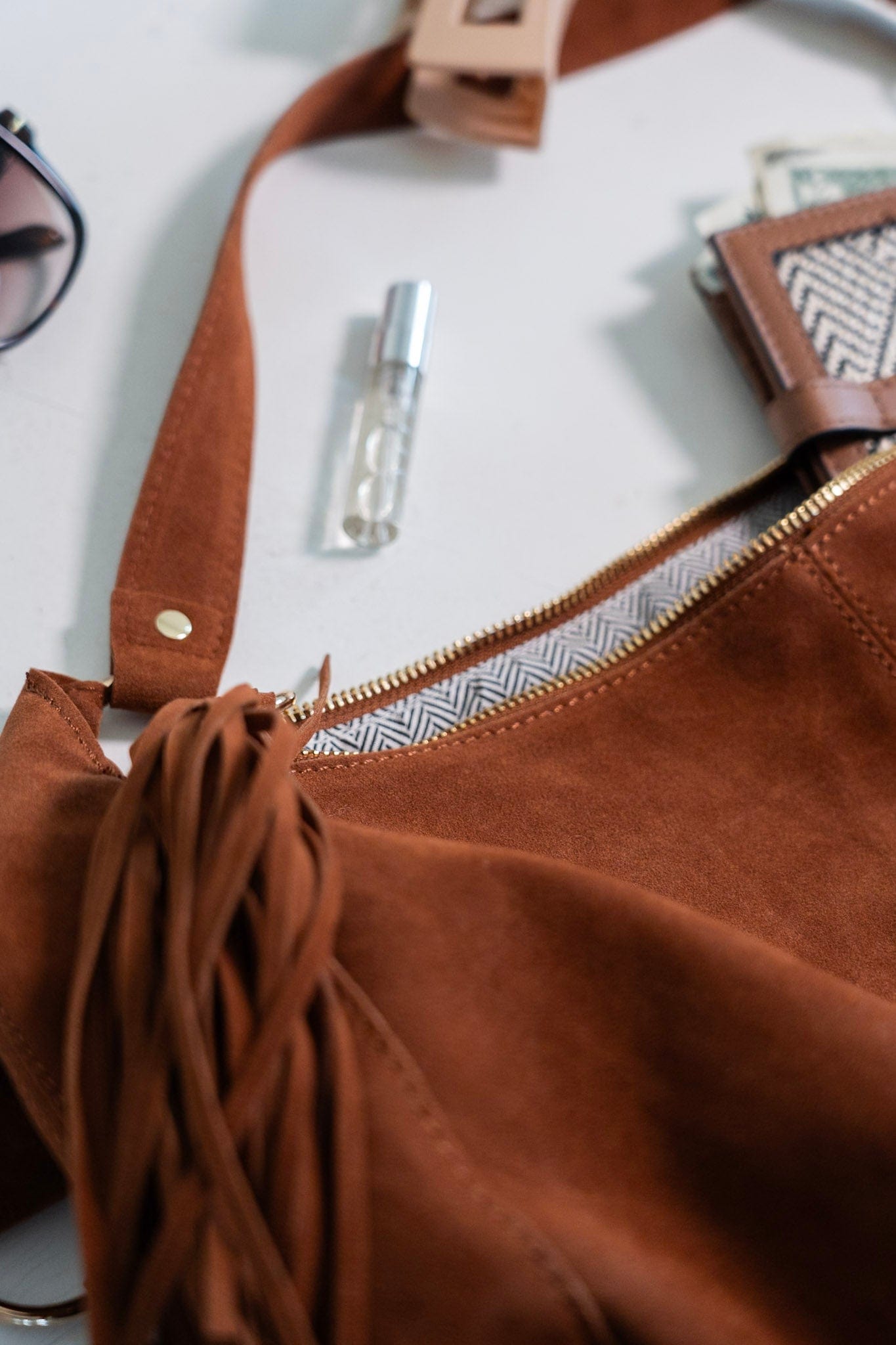 OVERSIZED SUEDE HOBO SHOULDER BAG WITH TASSEL