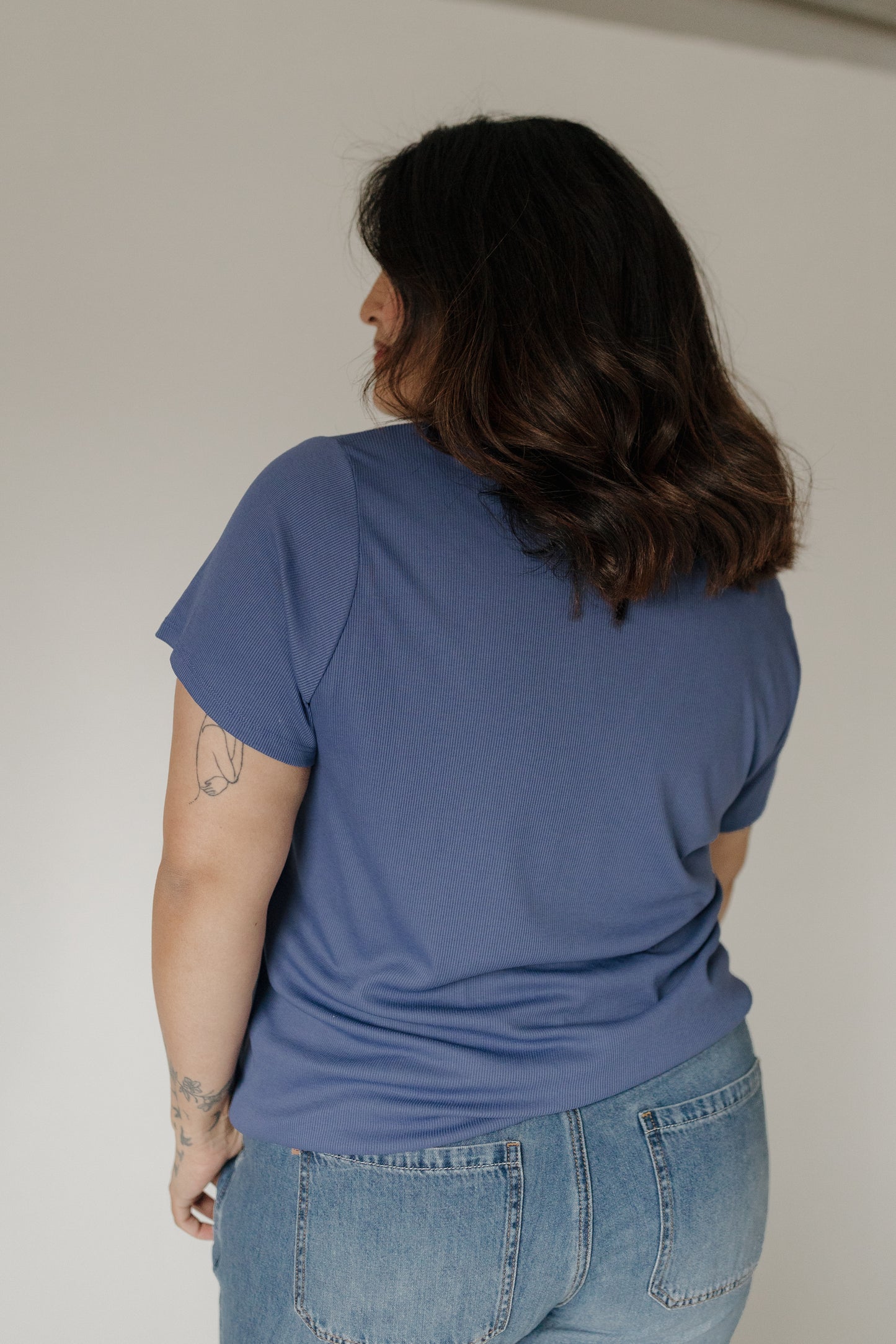 Denim Blue Double Button Ribbed V-Neck Boyfriend Tee