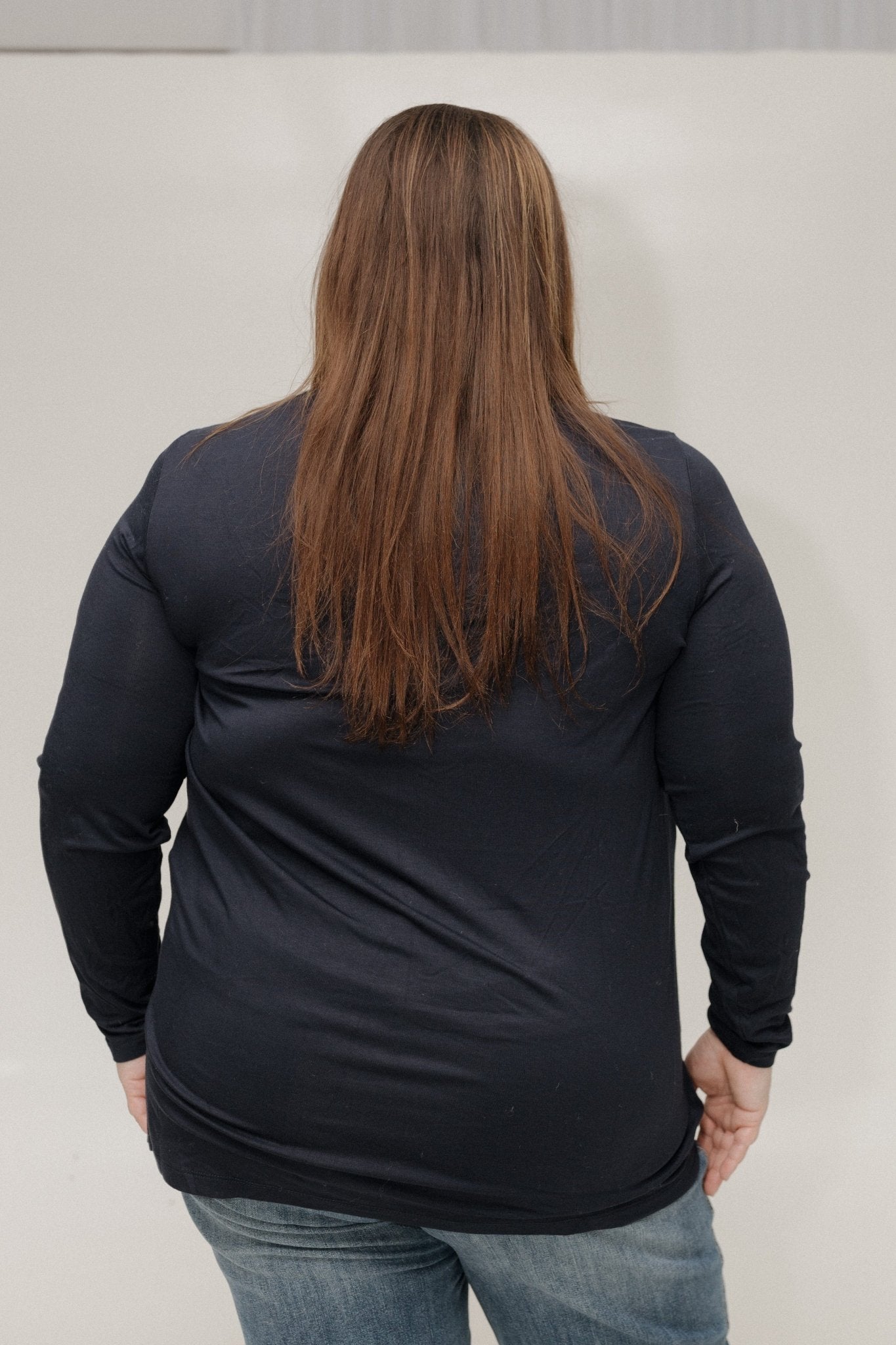 The deep navy hue offers a timeless alternative to black, giving you endless styling options. Pair it with denim jeans for casual weekends, style it with tailored trousers or skirts for a polished workday look, or layer it under a blazer, shacket, or cardigan for easy sophistication that transitions seamlessly from day to night.