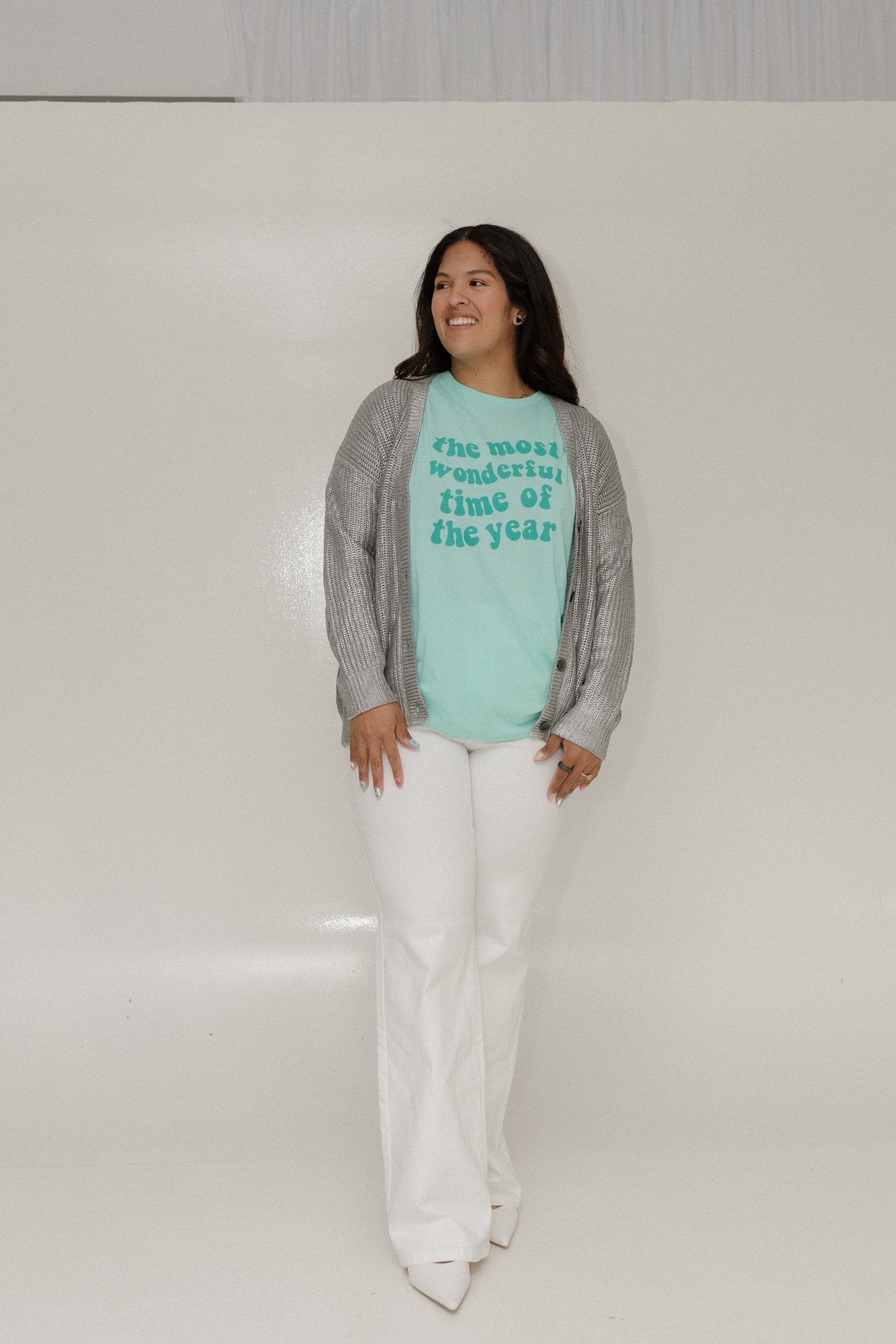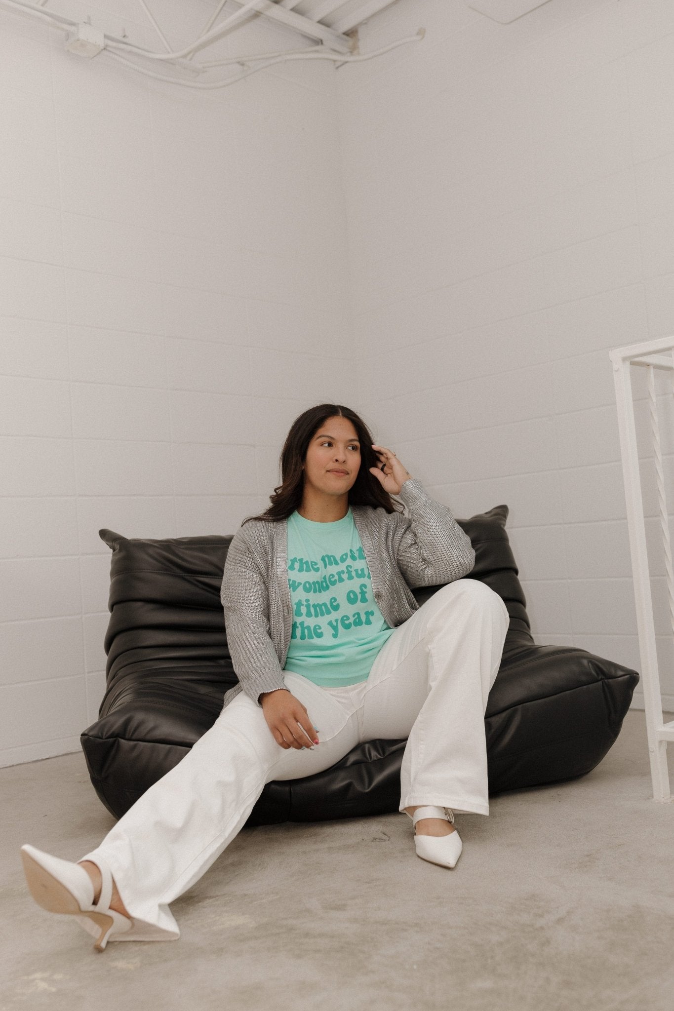 Make every moment merry and bright in our “Most Wonderful Time of the Year” Christmas Graphic Tee — a festive favorite designed for comfort and cheer. Printed on a soft mint Bella + Canvas cotton-poly blend, this unisex tee offers an easy, flattering fit for all-day wear through the holiday hustle.
