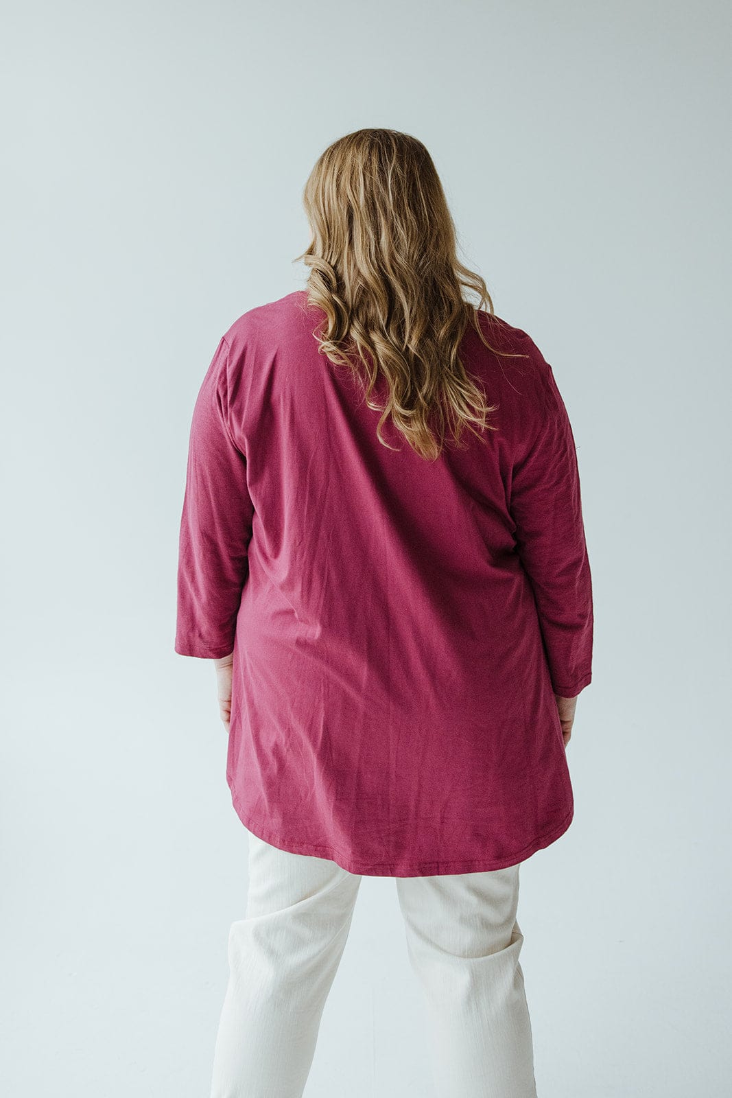 3/4 SLEEVE RAW SEAM TUNIC WITH POCKETS IN CRANBERRY