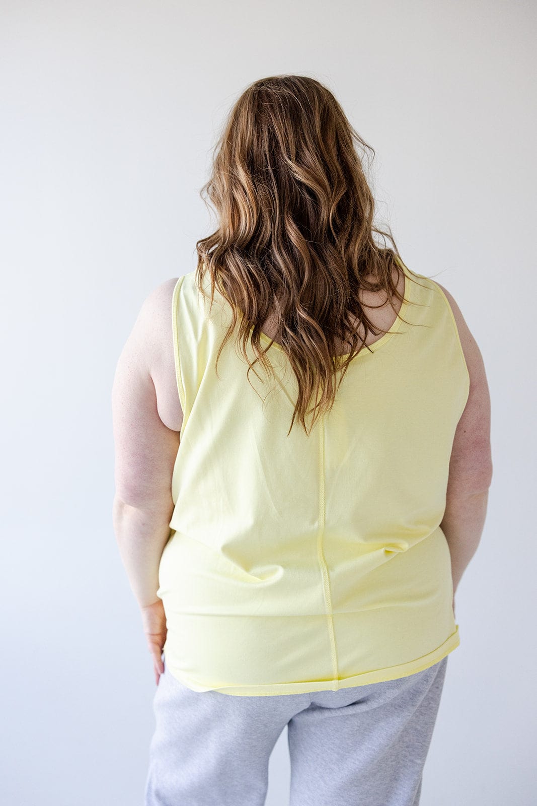 This basic scoop neck tank is a timeless piece for any wardrobe. Crafted with a blend of cotton and modal for superior softness, it features a relaxed fit, wide tank straps, and a seam down the back that hits at the hip. Plus, it comes in a vibrant sunshine yellow color that will brighten any outfit. Fits true to size. We suggest going with your typical size. Leslie is wearing a size 18. Want more information about the model? Visit our Lovely Models page.