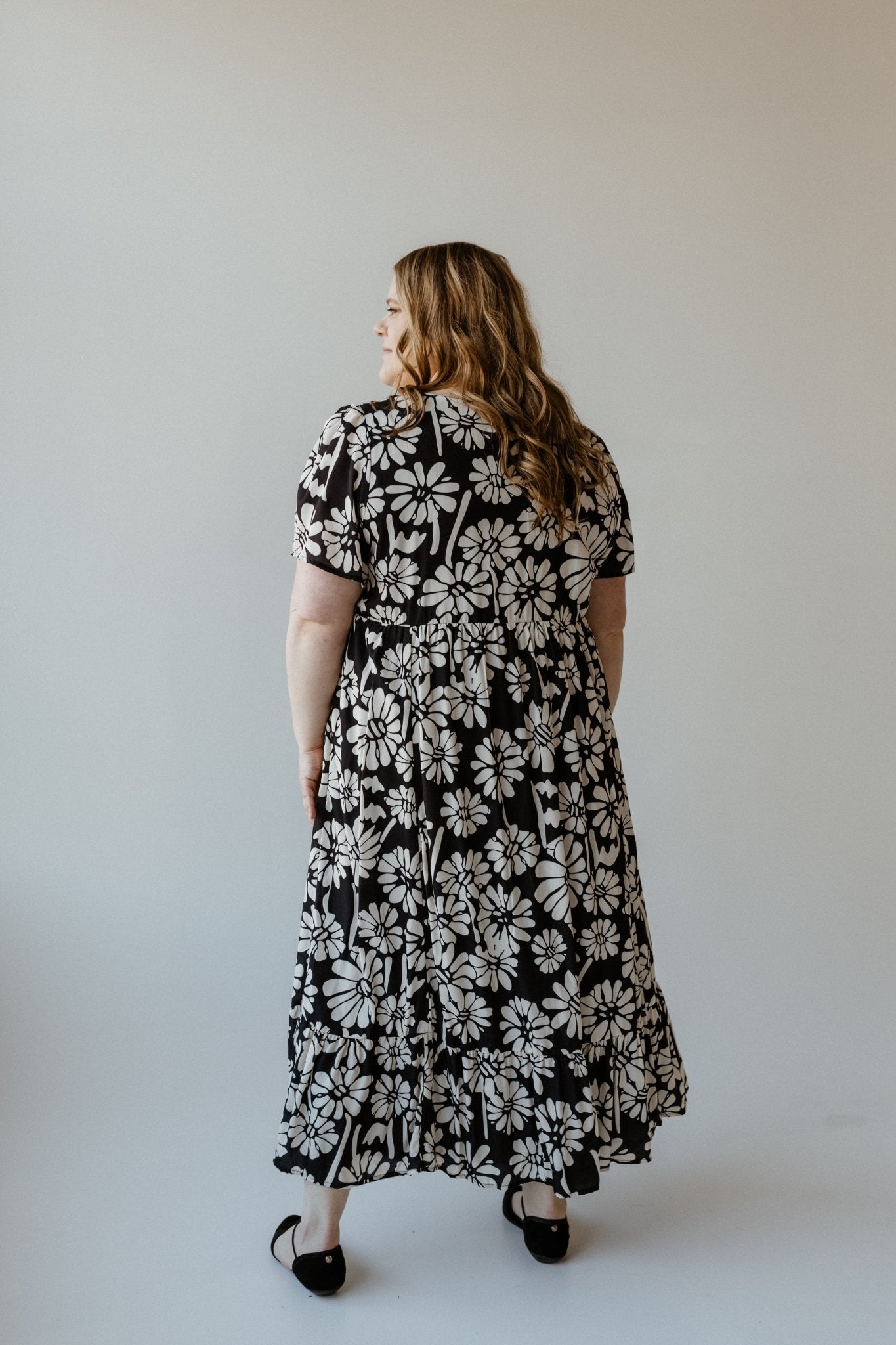 BOLD FLORAL PATTERN MIDI LENGTH DRESS