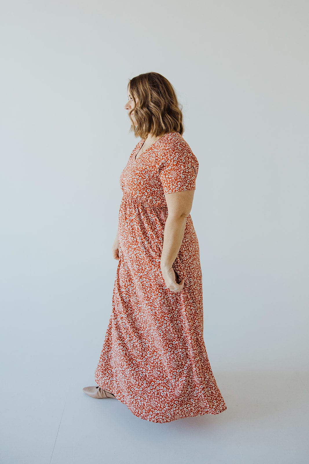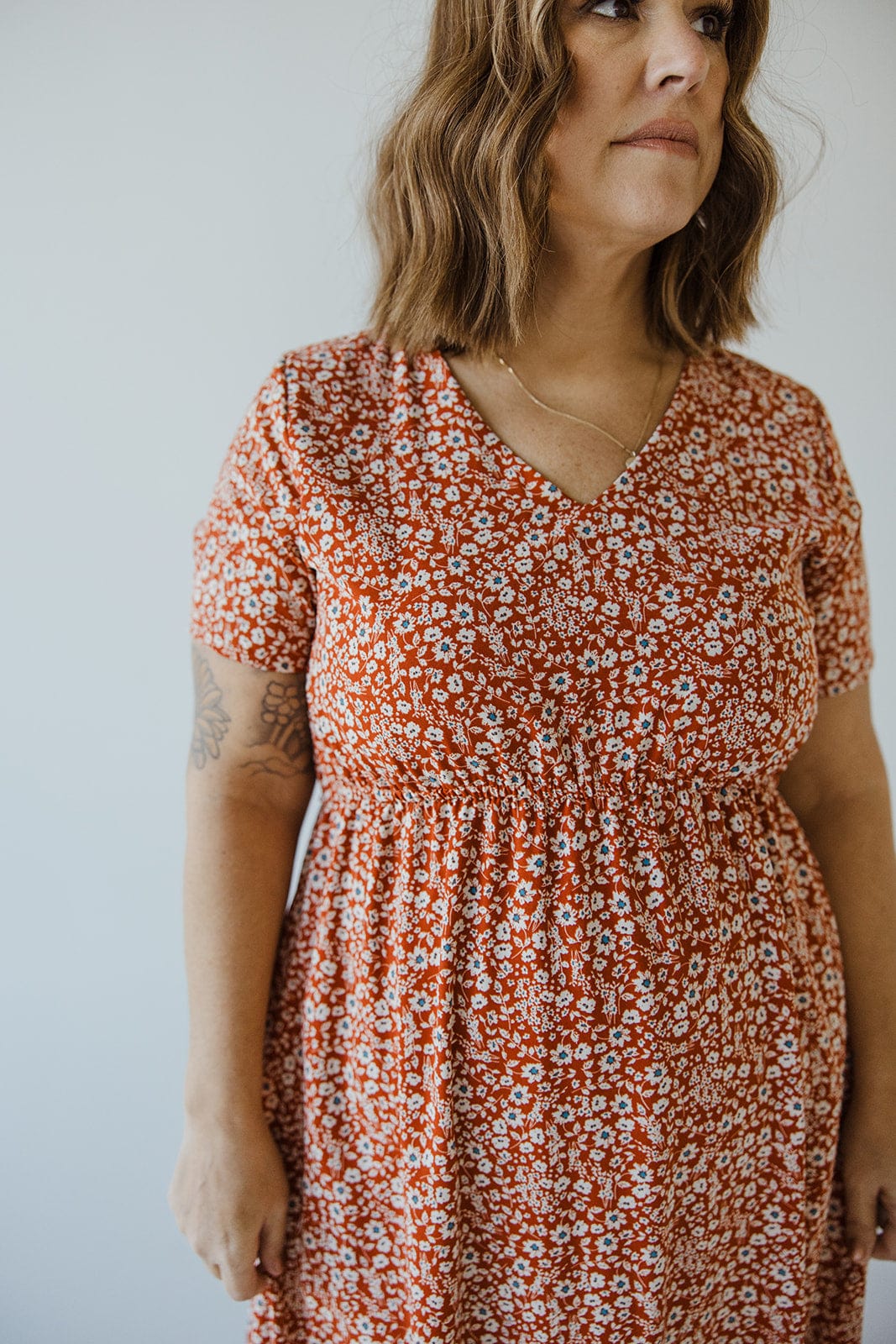 The Feminine Flutter Sleeve Midi Length in Dahlia is stylish and elegant for any occasion. Featuring a beautiful flutter sleeve and a stretchy empire waist with a tie-back, this dress gives you a figure-flattering silhouette. The straight skirt falls to a midi length for a timeless look. Fits slim. Misty is wearing a size xL. Want more information about the model? Visit our Lovely Models page.