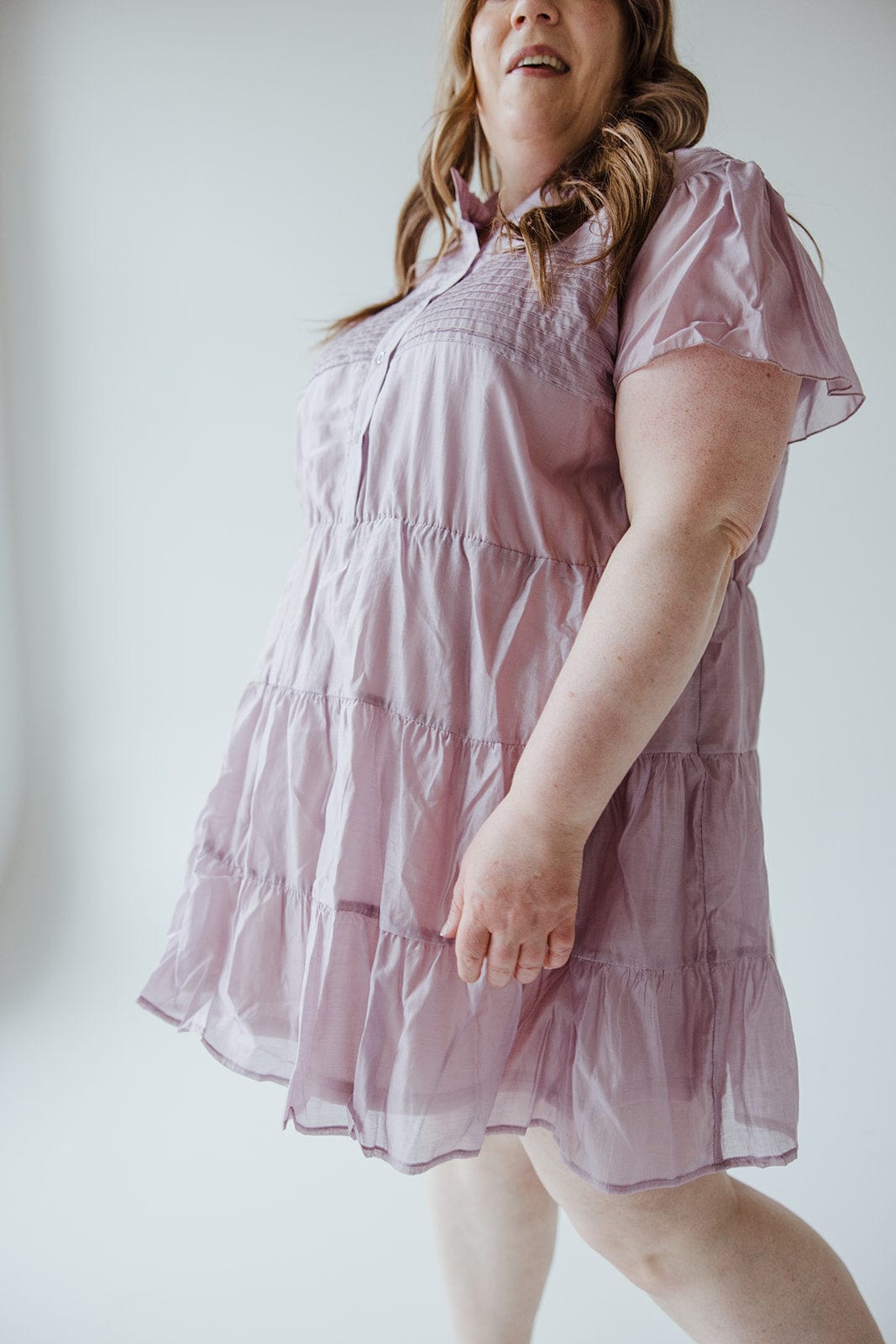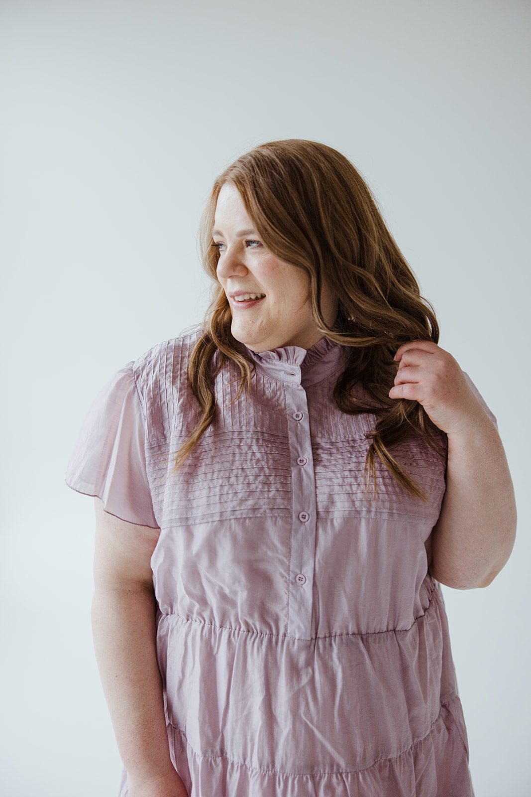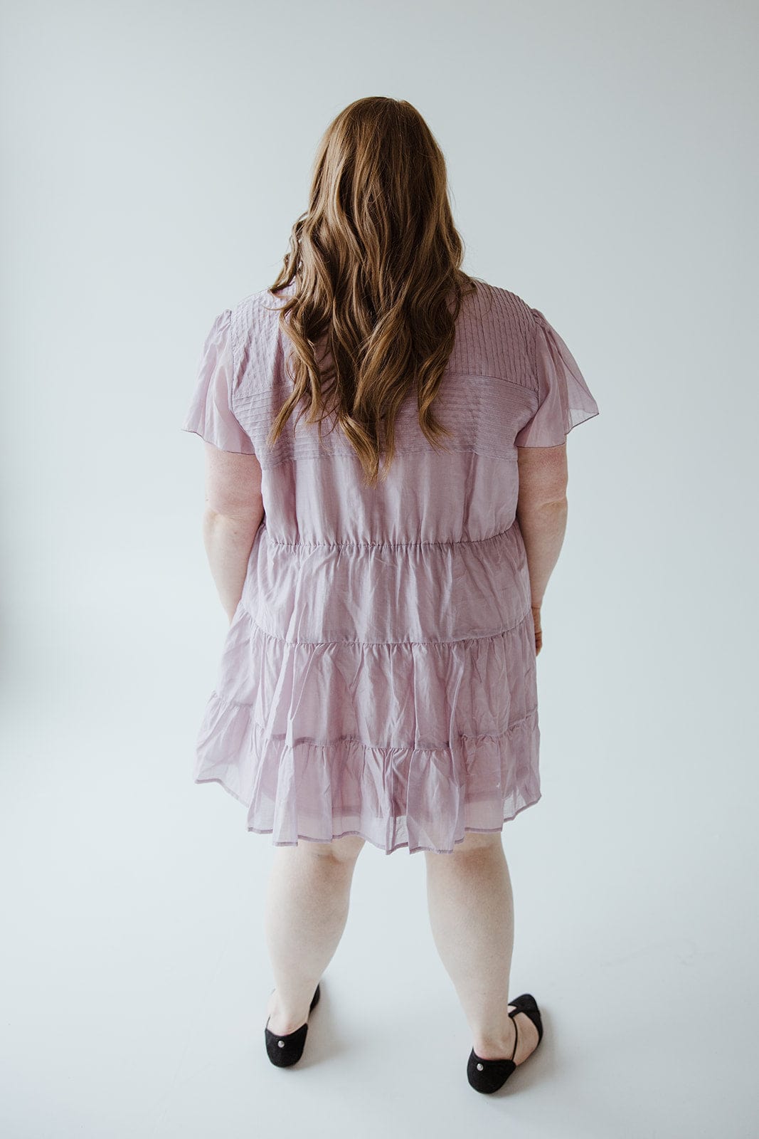 FLUTTER SLEEVE BUTTON FRONT DRESS IN ORCHID