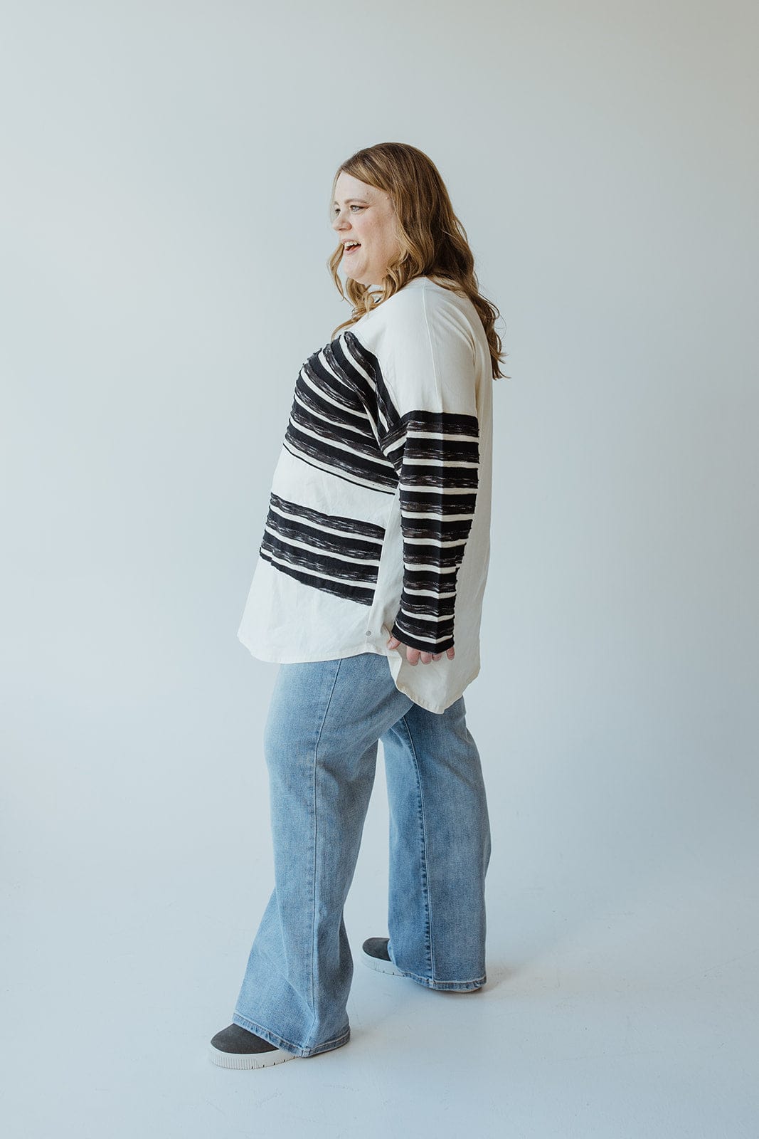 Designed for sophisticated and discerning tastes, our LONG-SLEEVE ROUND NECK TUNIC WITH STRIPE DETAIL is crafted for mid-size and plus-size women from soft fabric. Its long sleeves, round neckline, rounded hemline and pocket detail lend it a modern yet casually chic look that is perfect for any occasion. Fits true to size. We suggest going with your typical size. Leslie is wearing a size 3x. Want more information about the model? Visit our Lovely Models page.