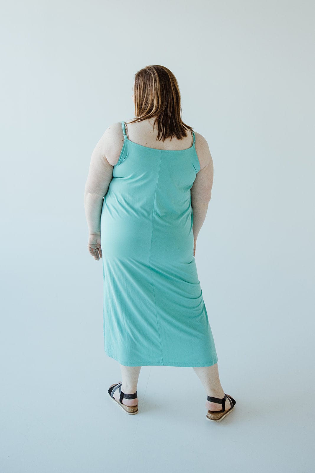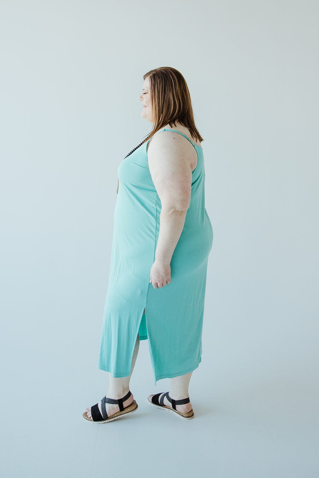Elevate your wardrobe with our MIDI LENGTH SLIP DRESS IN REEF, designed for effortless style and all-day comfort. Crafted from ultra-soft modal fabric, this plus-size midi dress drapes beautifully, offering a sleek and flattering fit. Featuring a chic V-neckline, adjustable cami straps, and side slits, this ash grey slip dress moves with you, making it perfect for any occasion—from casual brunches to evening outings. Whether you're layering it or wearing it solo, this versatile plus-size dress is a must-have for modern, confident women.