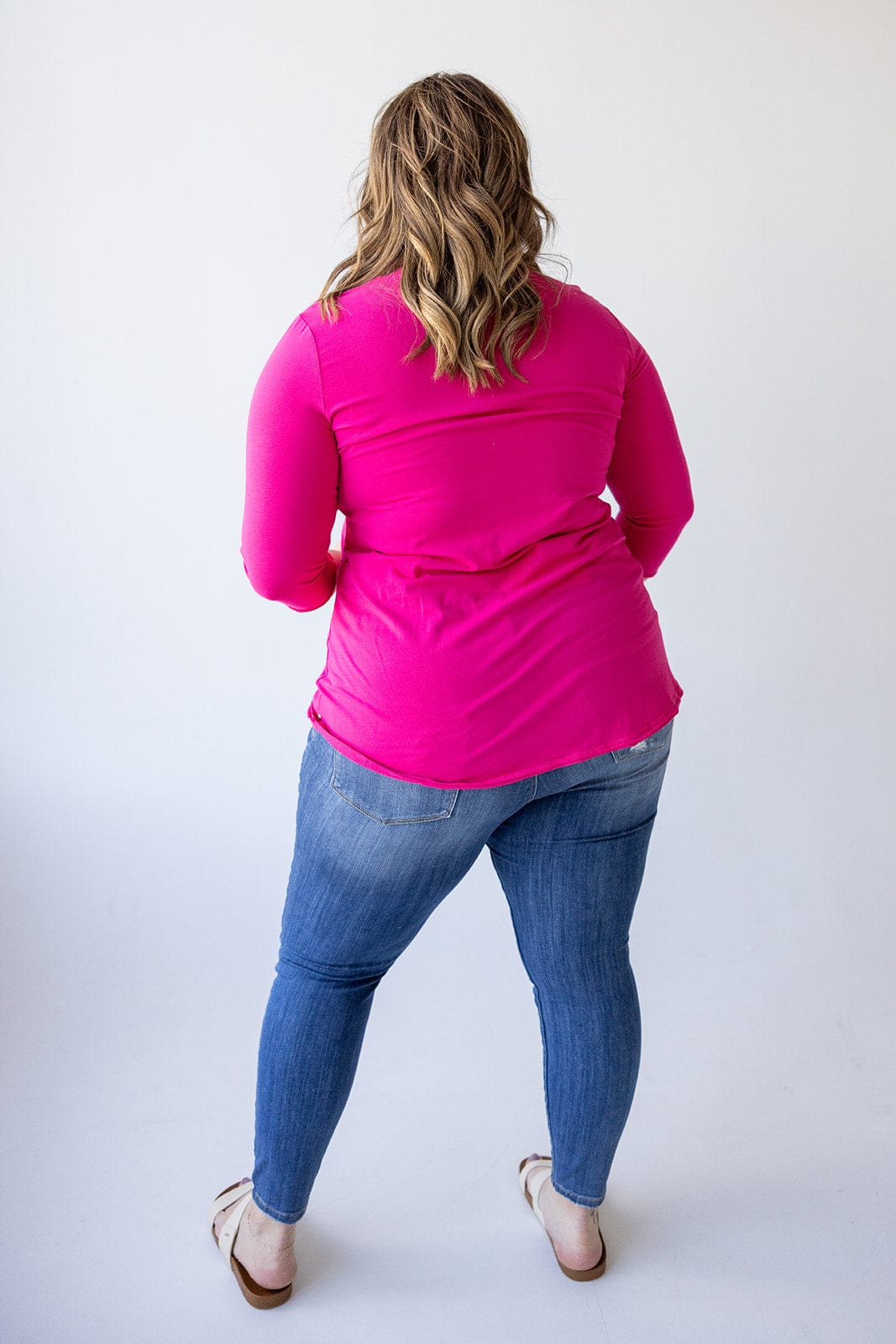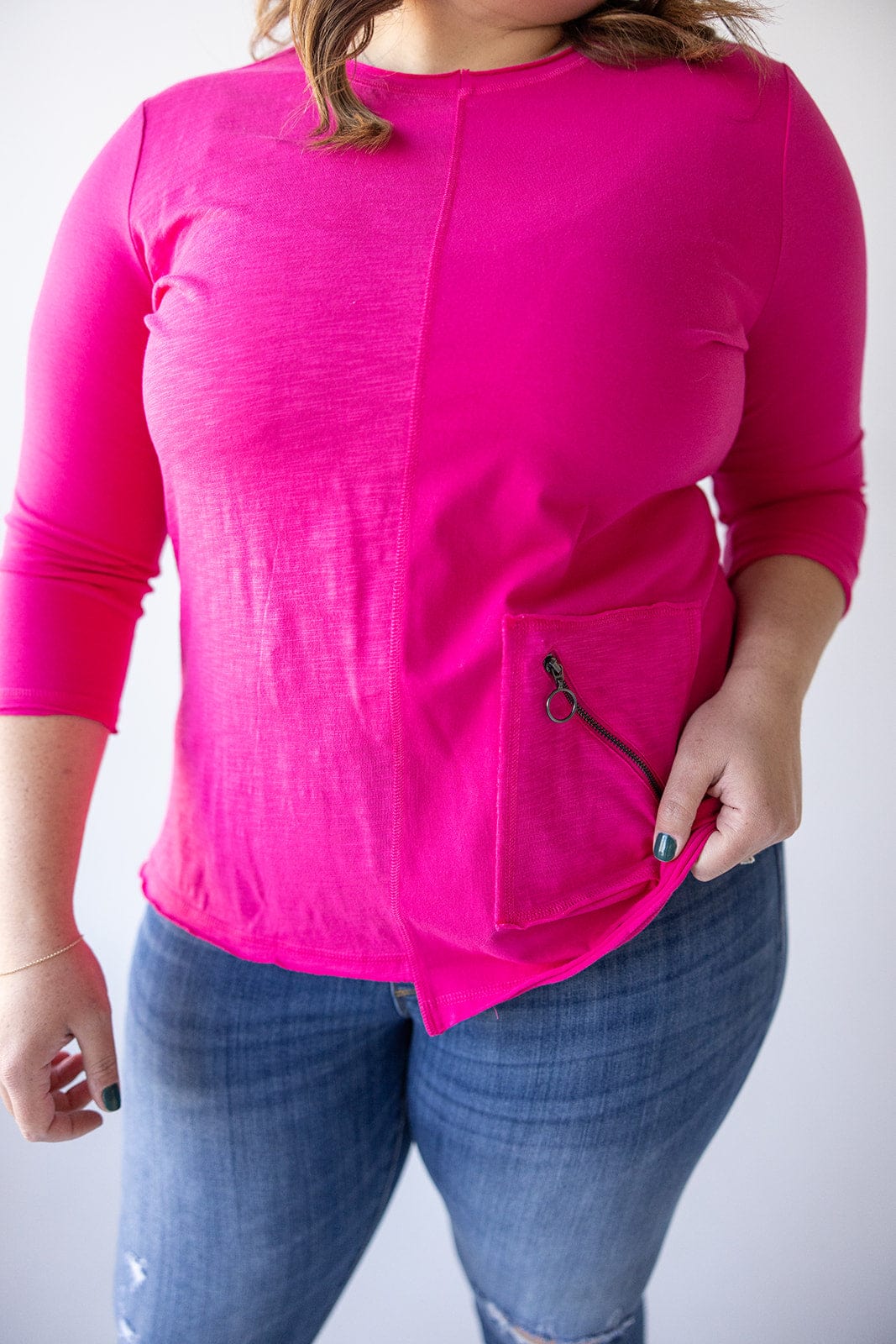 RAW EDGE TUNIC WITH POCKET DETAIL IN GLAM PINK