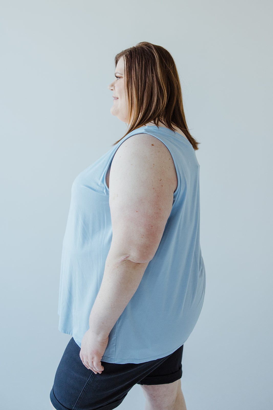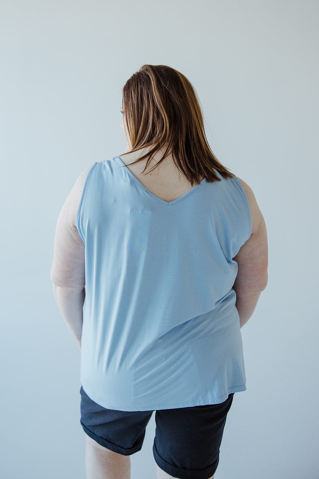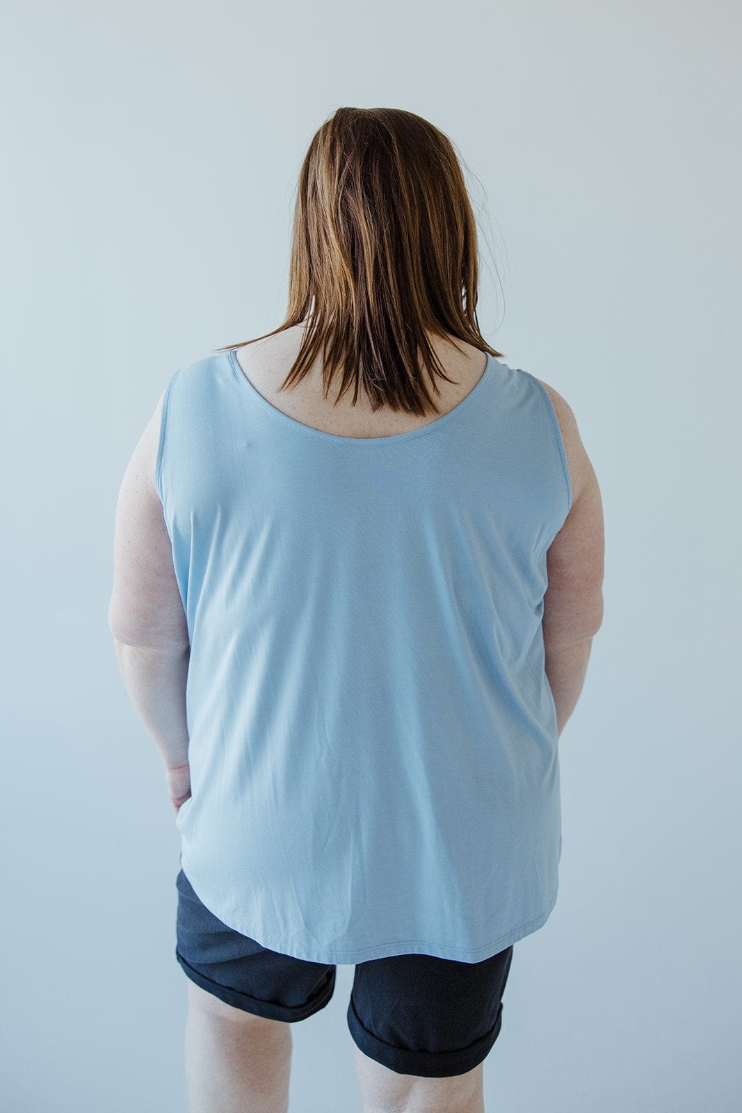 Simple, elegant, and oh-so-perfect! There is something wonderful about an excellent fitting black tank that is simple yet has that one detail (the reversible neckline) that takes it over the edge. This black tank is effortlessly versatile too! Pair it with a blazer and dress pants for work or your favorite activewear leggings for the days you need to be on the go! You'll love the choice of a v-neckline or rounded neckline. Also, you will enjoy the wide tank straps and the soft flowy fabric! The bamboo fabric is amazing! Enjoy all of the benefits of bamboo! Antibacterial, sweat absorbing, and temperature regulating. Fits true to size. Stacey is wearing a size 3x. Want more information about the model? Visit our Lovely Models page.