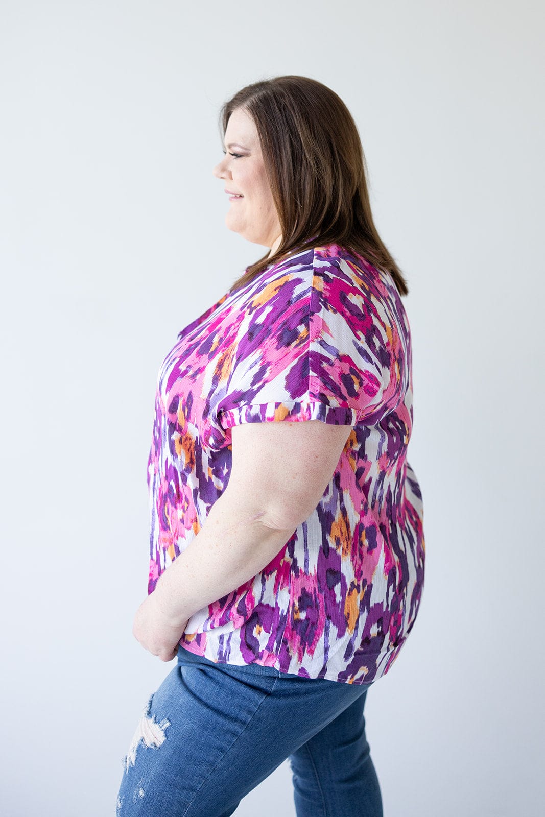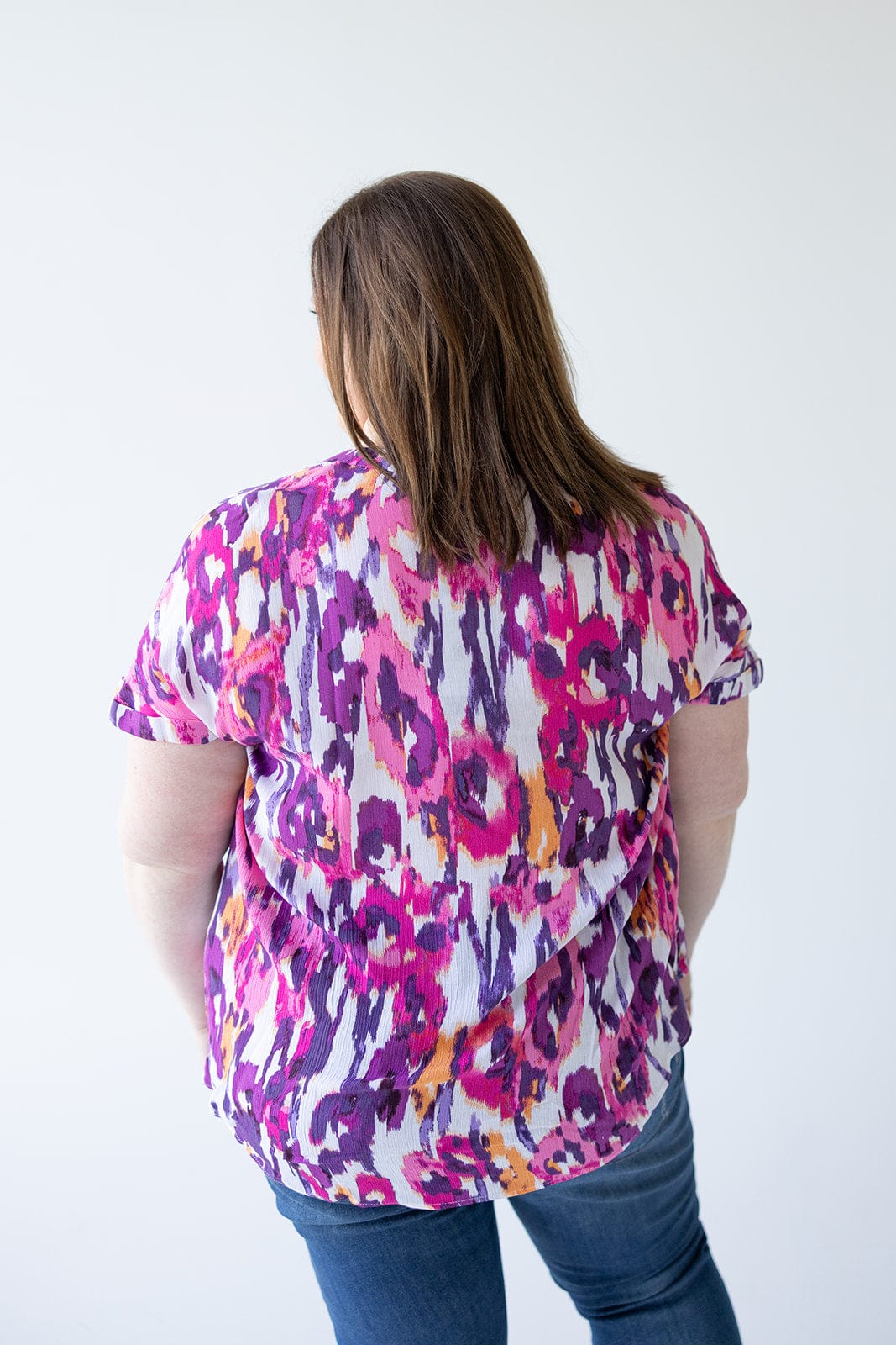 SHORT SLEEVE CHIFFON BLOUSE WITH PLEAT