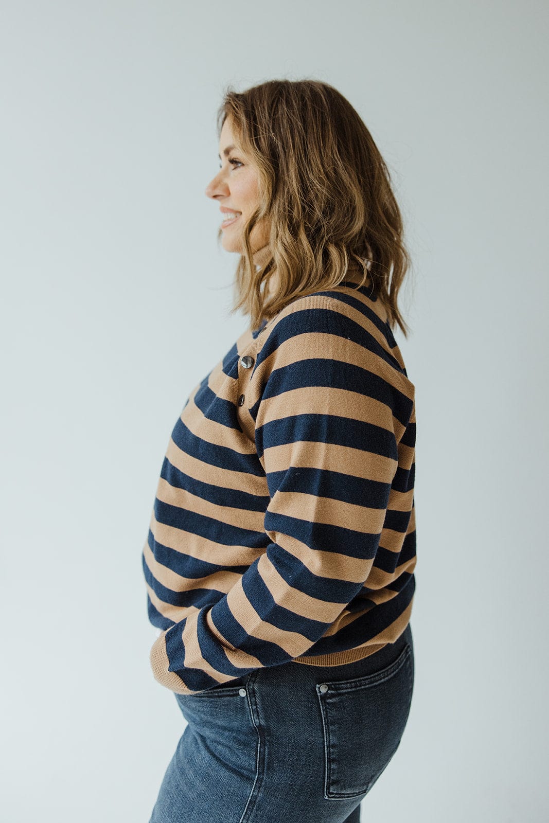 STRIPED TURTLENECK WITH BUTTON DETAIL