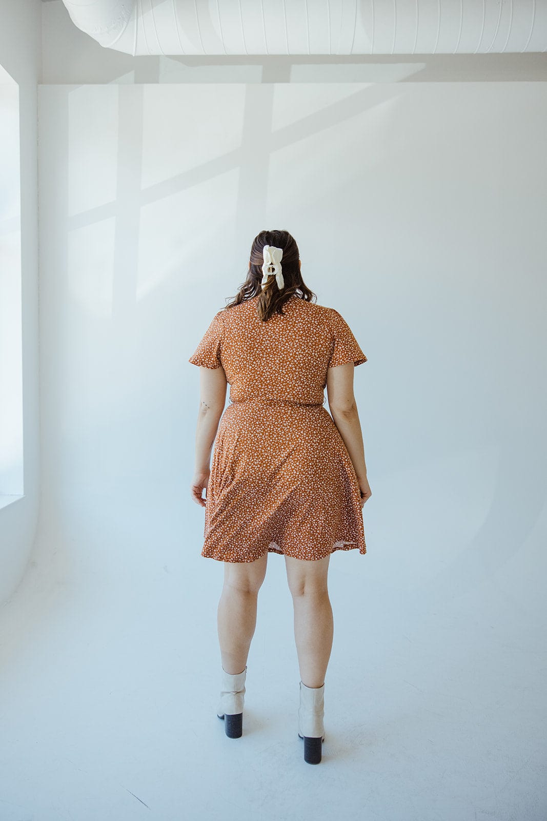 Blooming with all the charm and flirty feminine details, yet still perfectly tasteful and church-worthy! This dress is perfect for all your upcoming fall special occasions! For a casual date night add a distressed jean jacket or a day at the office layer a navy blazer and nude pumps for a great boss babe outfit. It is ultra-flattering with the faux wrap. The ruching details on the shoulders and at the flutter sleeves add to this classic silhouette's feminine vibes. The tie can be tied in the front or the back. It is in a buttery soft fabric and knee-length. Fits small. We suggest sizing up one size.