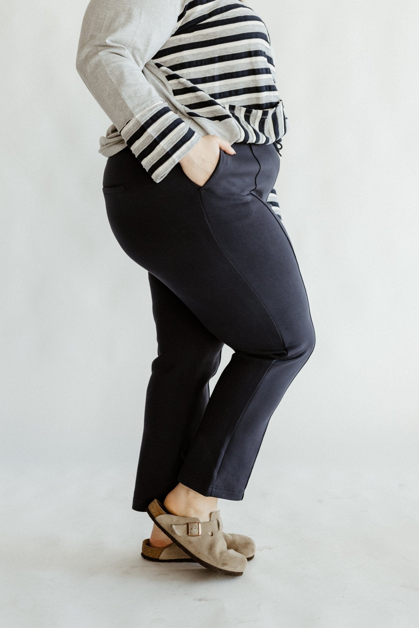 Take flight with the LIGHT AS AIR TROUSER IN MIDNIGHT! Chic vertical pleats, comfy elastic waistband, and adjustable drawstring make this pant perfect for all-day style and comfort. Empower your fashion with this mid-to-plus size staple. Ready to soar? Fits true to size. We recommend going with your typical size. Cara is wearing a size 18. Want more information about the model? Visit our Lovely Models page.