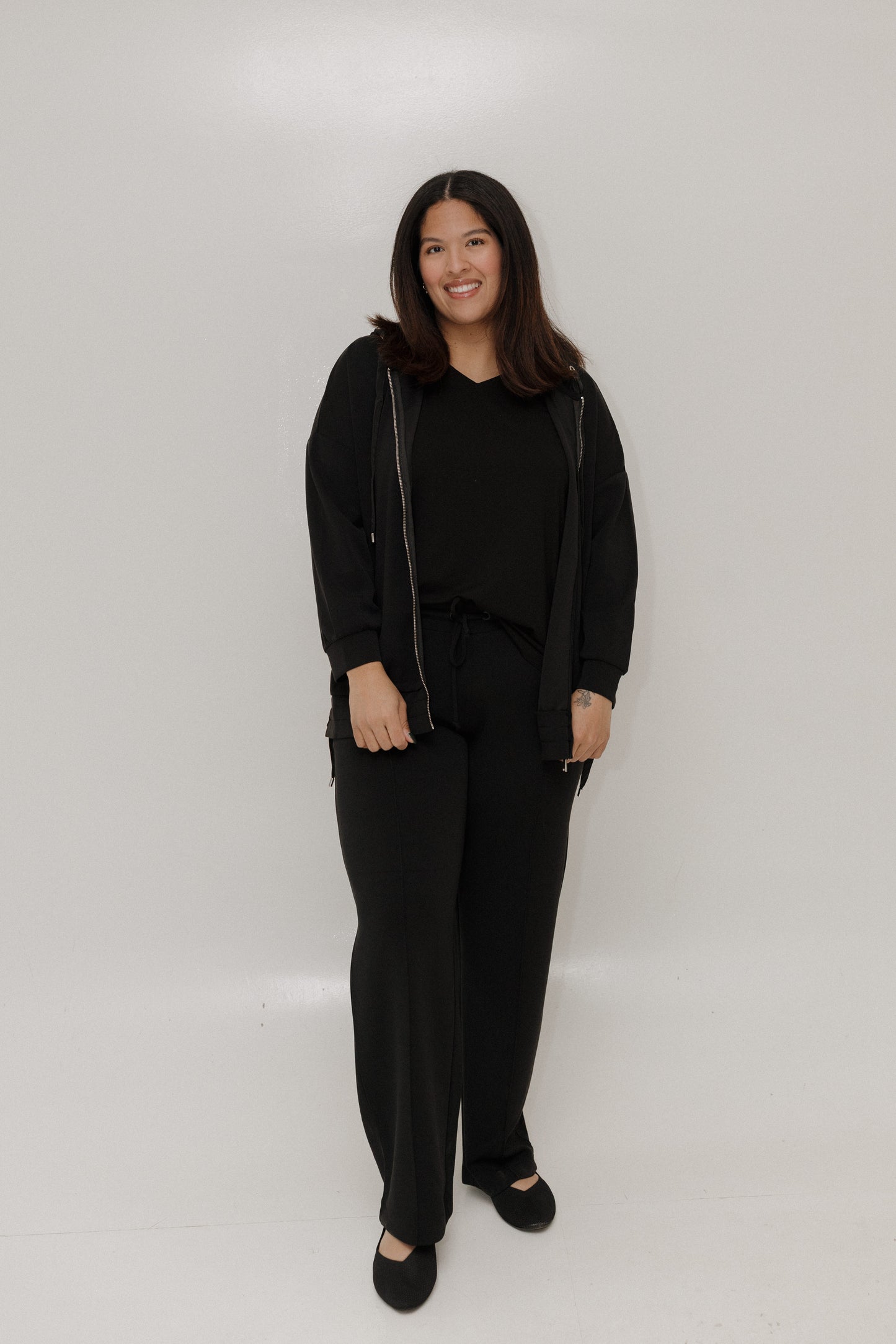 Meet the pant that does it all. The Light As Air Slim Straight Pant is designed for mid-size and plus-size women who want luxury-level comfort with everyday versatility. Crafted from a silky-soft, featherlight modal blend, these pants smooth, move, and breathe beautifully while maintaining a polished look. With an easy pull-on waistband and a flattering slim straight leg, this black pant transitions seamlessly from workdays to weekends—and everywhere in between.