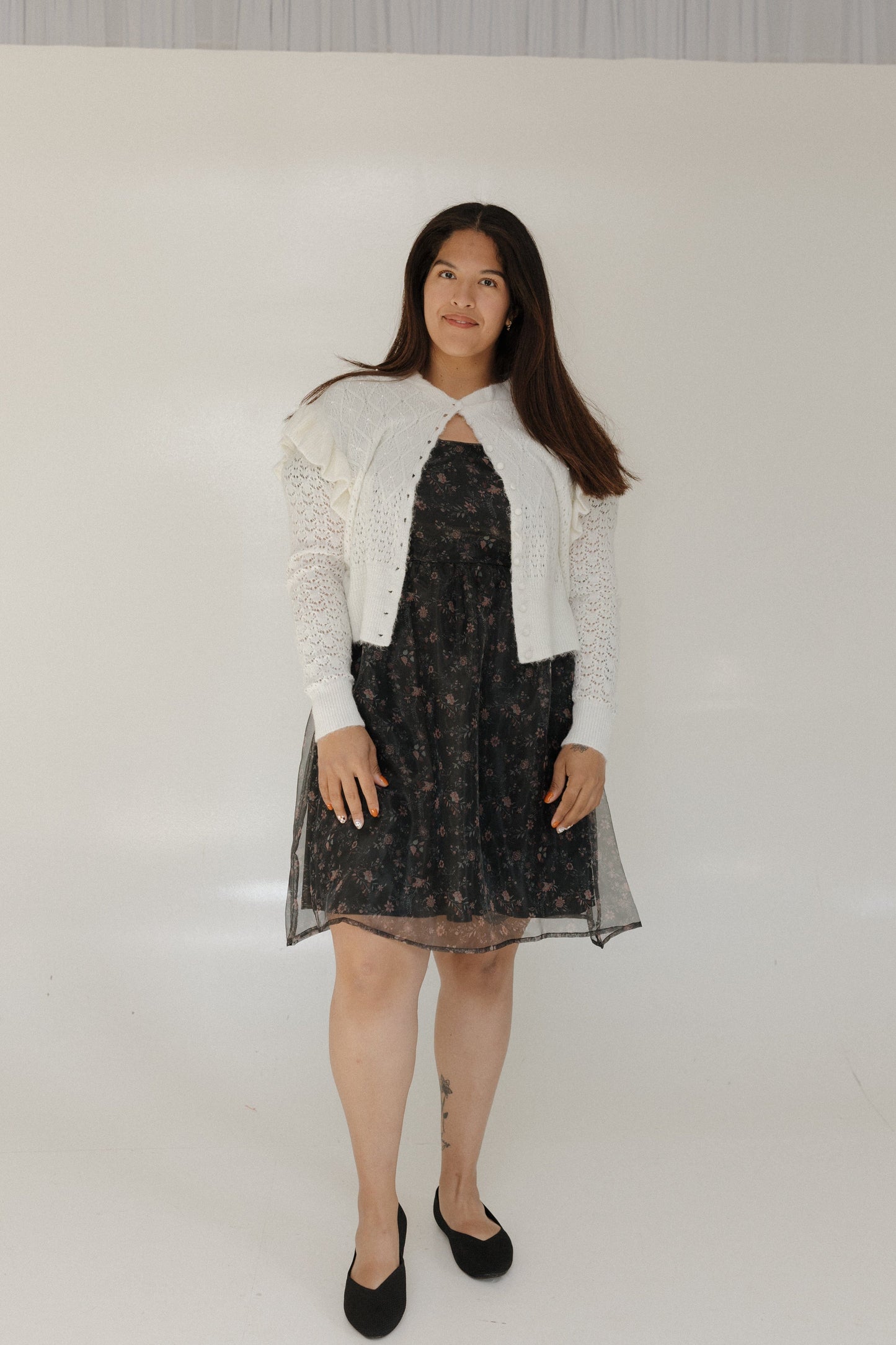 Upgrade your wardrobe with a playful touch in our Crochet Cardigan with Ruffle Sleeves, exclusively at Love Marlow Boutique in Sioux Falls. Perfect for layering over dresses, tops, or your favorite jeans, this cardigan blends charming details with effortless style.