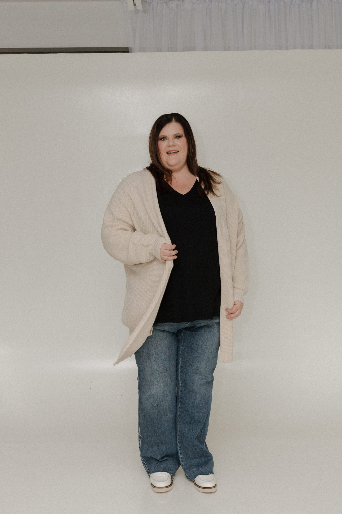 🤍 Dolman sleeves and open front for a flattering silhouette