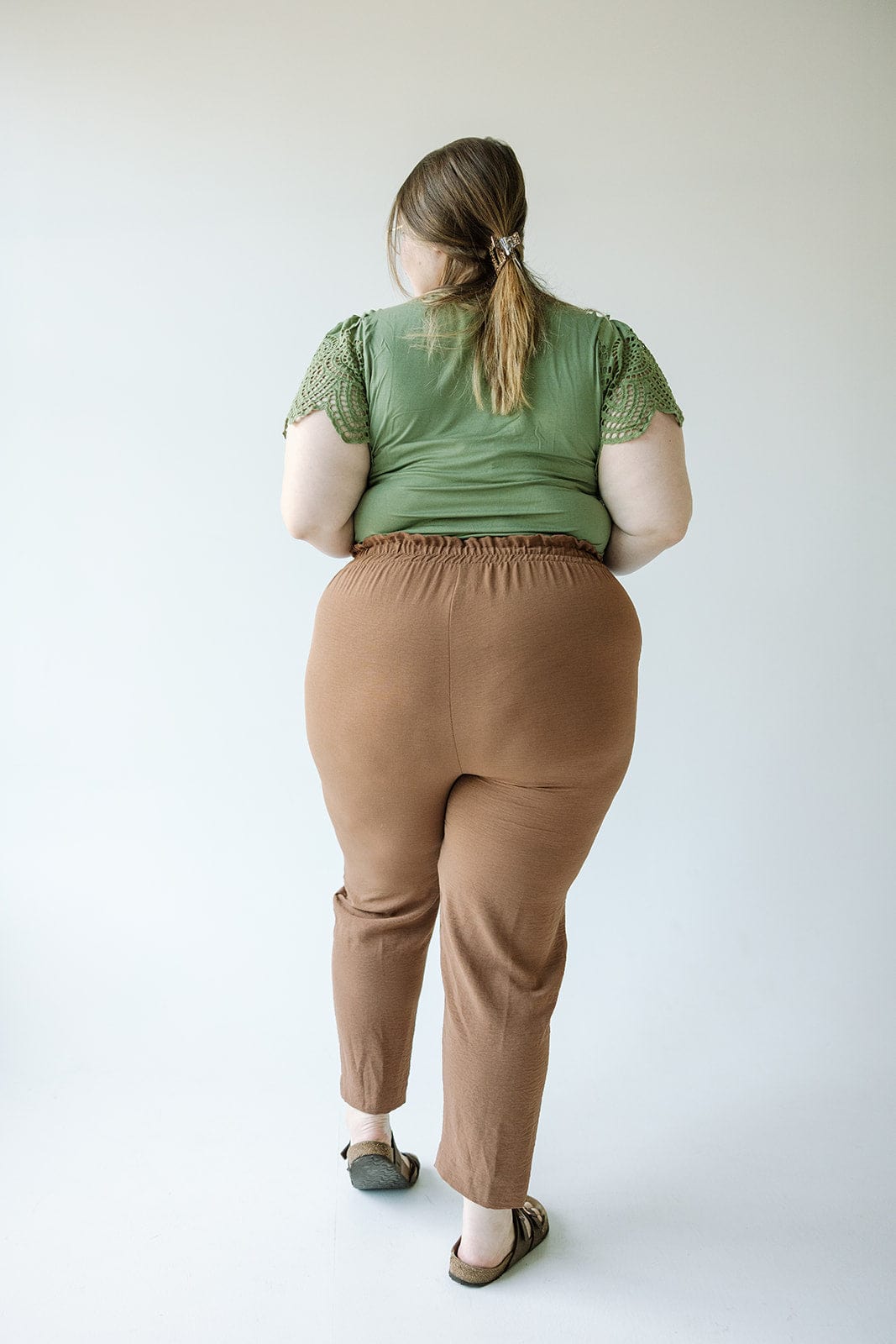 Upgrade your mid to plus-size wardrobe with our high-waist paper bag pant. Designed with comfort and style in mind, these solid woven pants feature an adjustable belt and side pockets. The lightweight fabric has a trendy crinkle pattern, perfect for hiding any imperfections. Snag your perfect size and rock these pants with confidence. Who needs perfection anyways?! Fit is true to size, but does not have much stretch. Cara is wearing a size 3x. Want more information about the model? Visit our Lovely Models page.