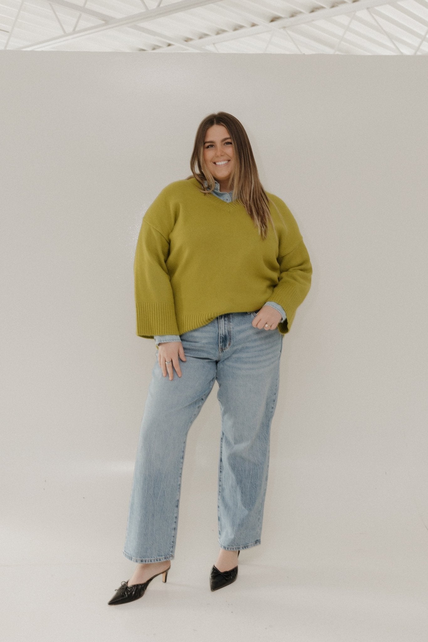Meet your elevated everyday essential. The Essential Dolman V-Neck Sweater in Olive Leaf blends relaxed sophistication with cozy comfort, designed specifically for mid-size and plus-size women. Featuring a flattering V-neckline, dolman long sleeves, and a tunic-length silhouette, this soft knit sweater drapes beautifully while offering effortless polish for workdays or weekends.