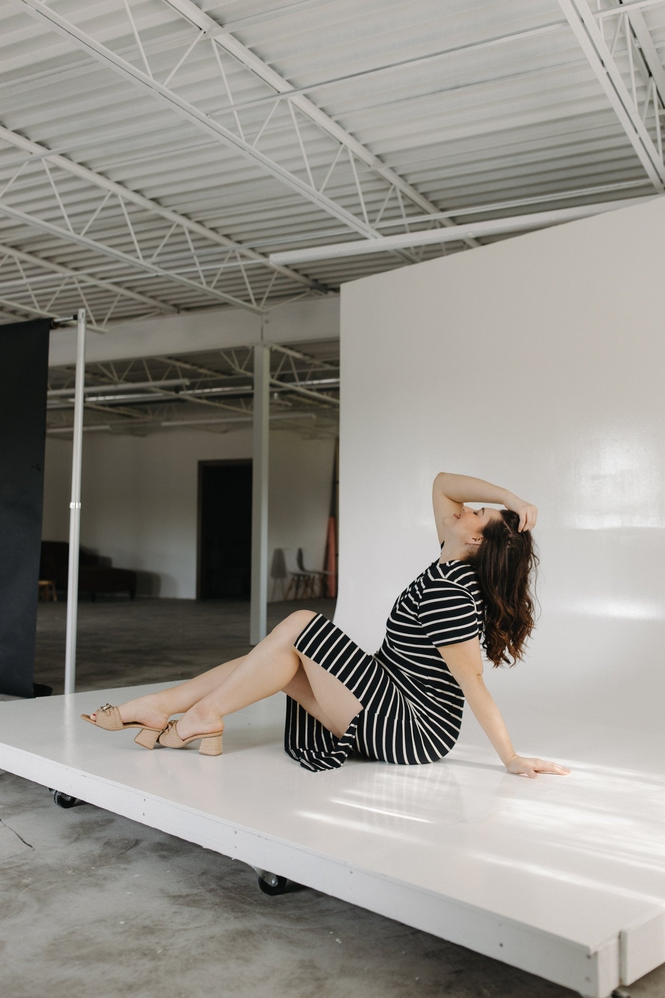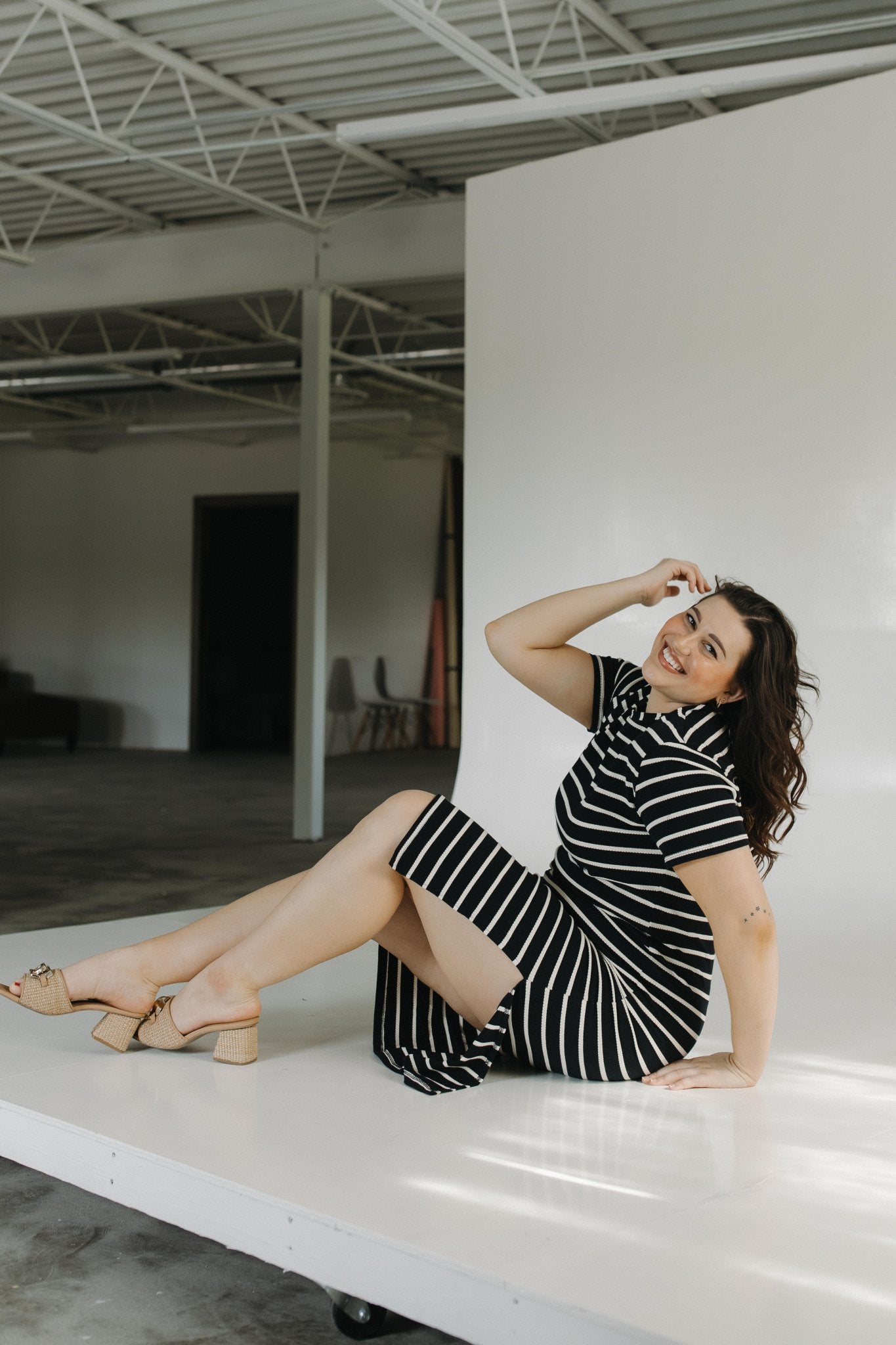 Effortless, flattering, and made for movement—the Cream Striped Black T-Shirt Dress is your new go-to for everyday confidence.