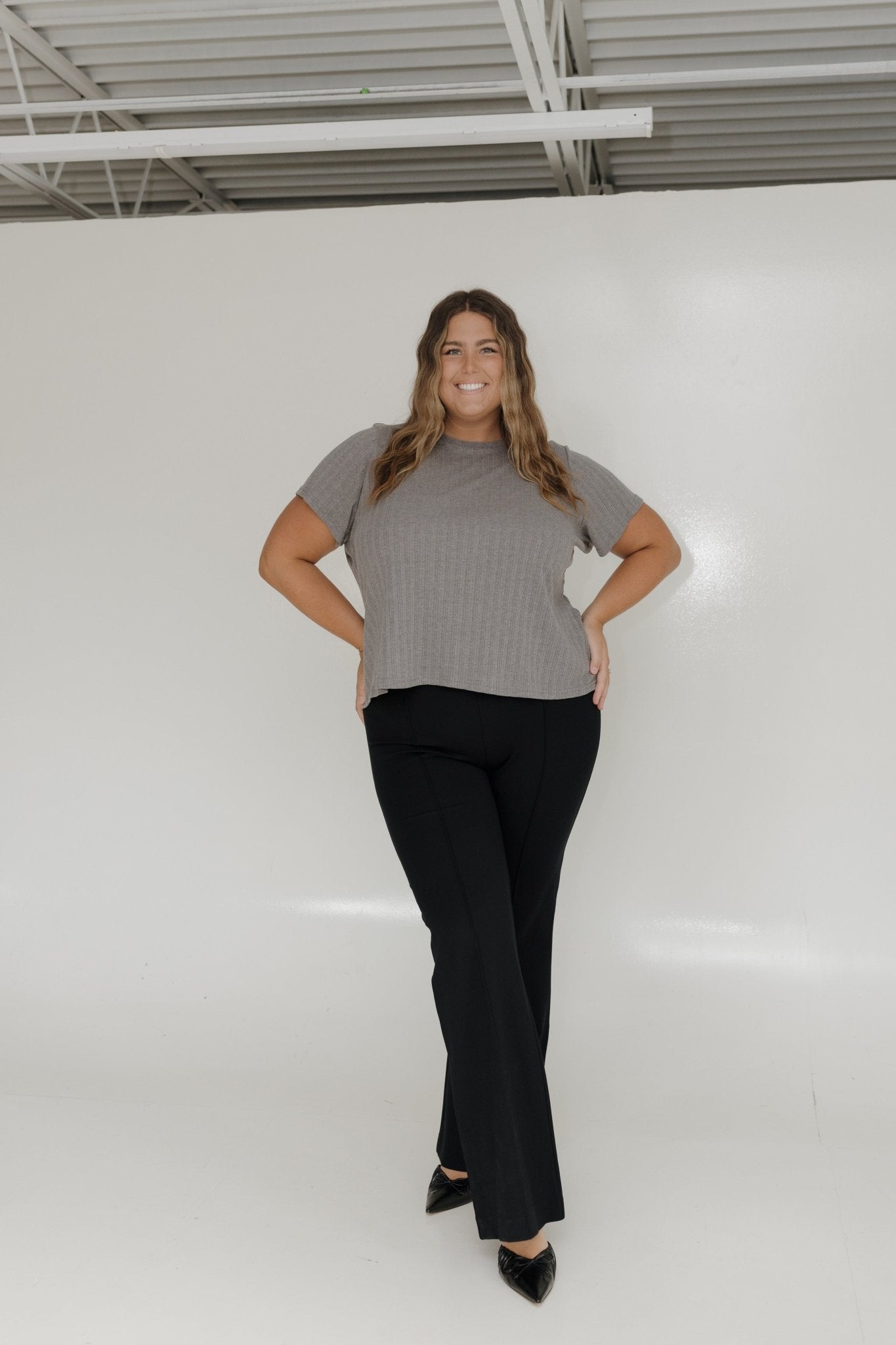 Elevate your everyday basics with our Pointelle Texture Tee in Lead, a soft and stylish update to the classic crew neck. Crafted from a breathable polyester-cotton blend, this fitted short-sleeve tee features a delicate pointelle texture for subtle dimension and a flattering, feminine finish. The rich lead gray hue pairs effortlessly with everything in your wardrobe, from denim to skirts.
