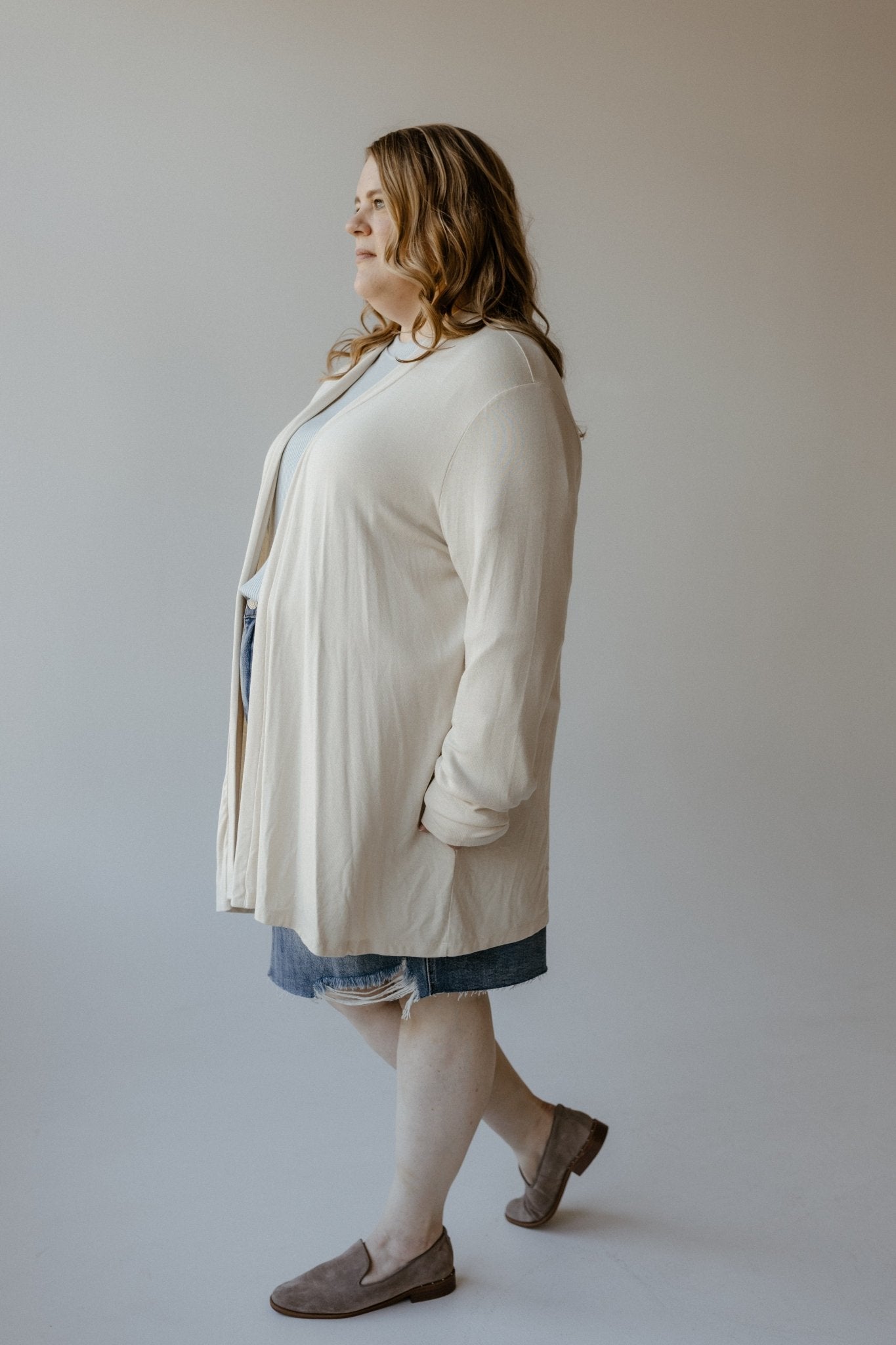 This lightweight long-sleeved cardigan is so cozy-luxe it will be your new favorite! The fabric has an amazing weight that doesn't add heat, just great flow, and a drape that doesn't cling where you don't want it to. Effortlessly pair it with any of your favorite blouses or tees, dresses or skirts, absolutely anything! The classic sand color makes it even easier! It has an open front, long sleeves, slight duster length, and great luxurious fabric! Fits true to size.