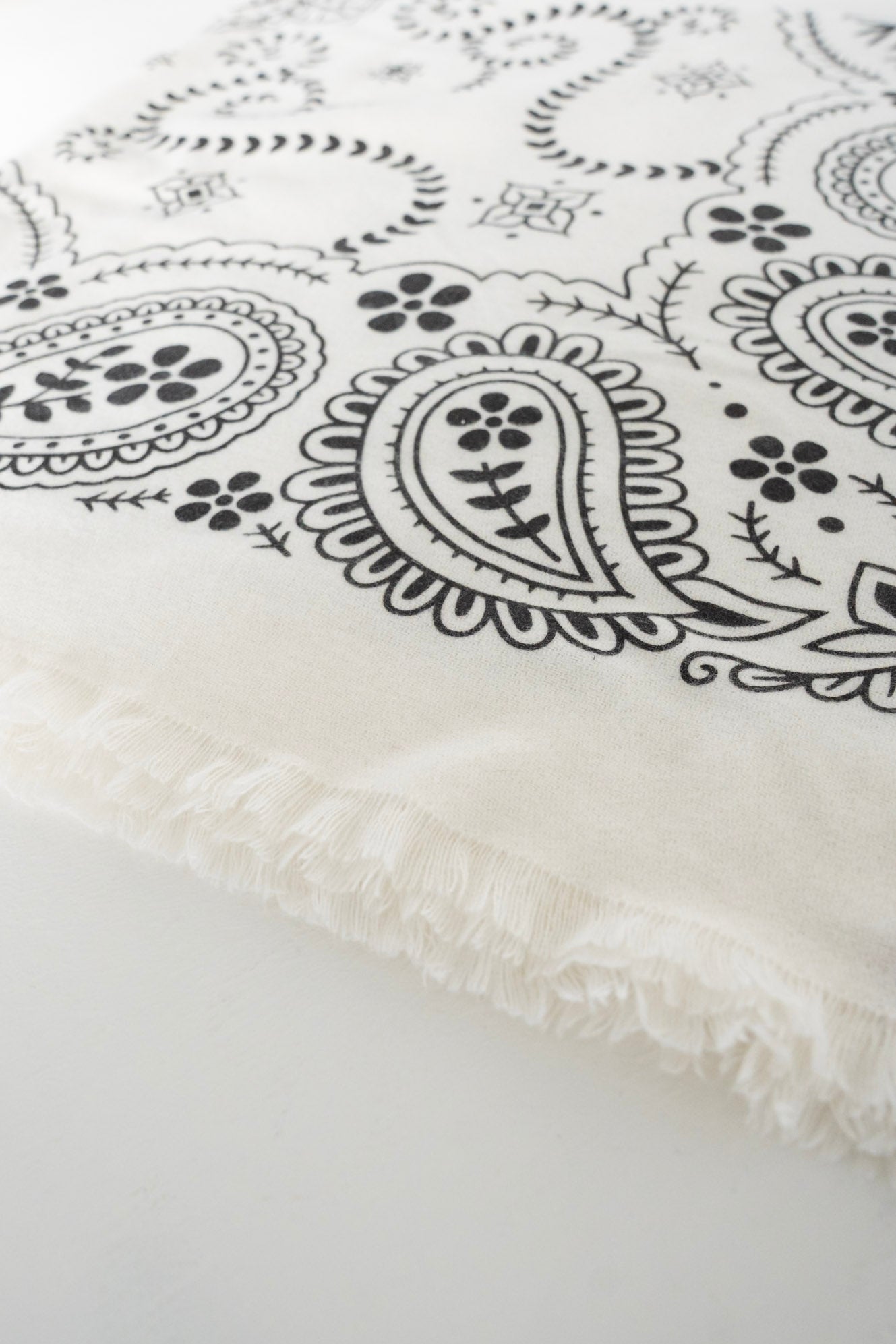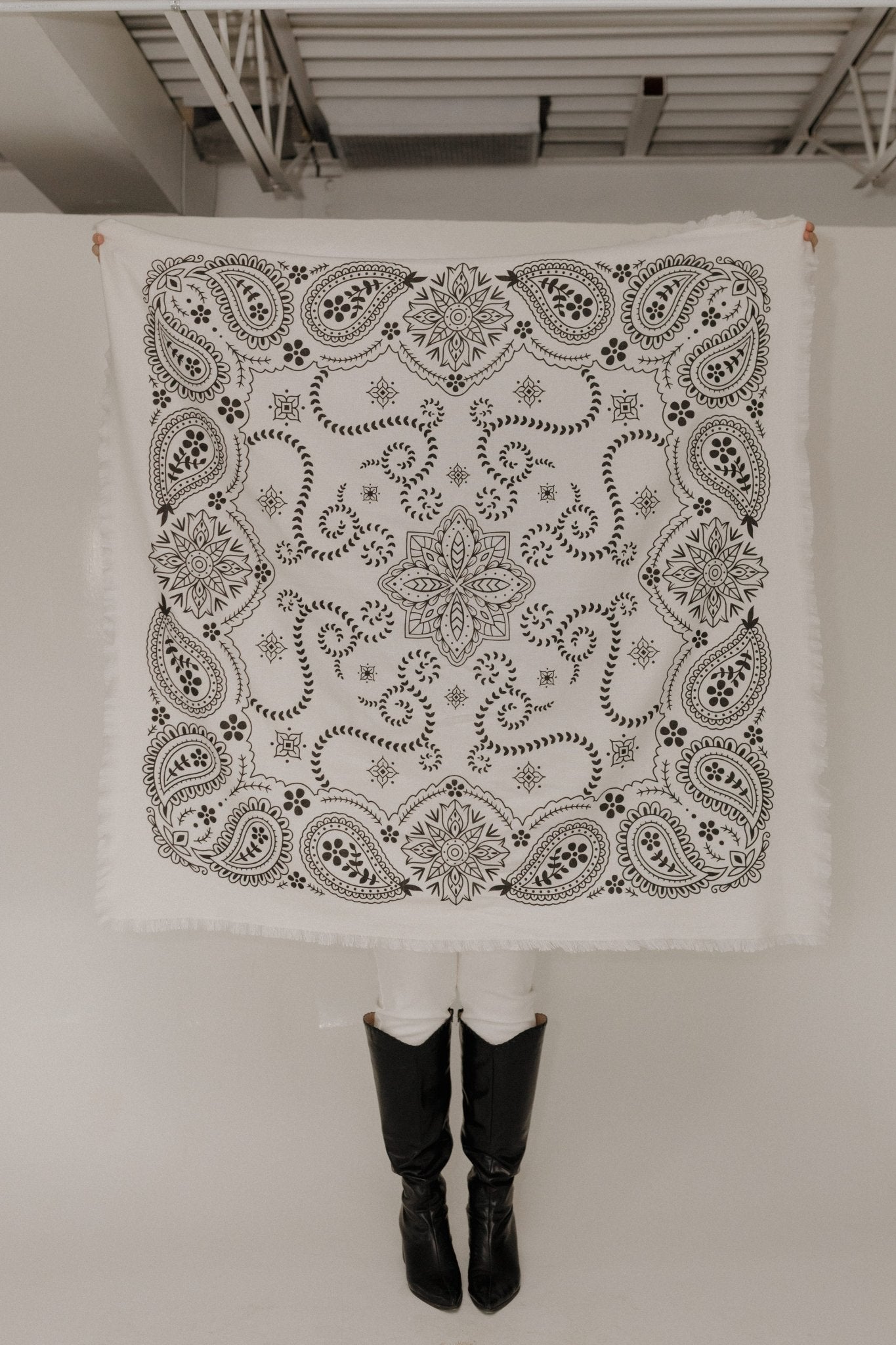 Meet the accessory your wardrobe didn’t know it was missing. The Bandana Scarf in Ecru is a generously sized square scarf featuring a timeless bandana-inspired pattern with a modern, elevated feel. Designed in Paris and crafted from a luxe viscose-wool blend, this scarf is lightweight yet cozy—perfect for effortless, year-round layering.