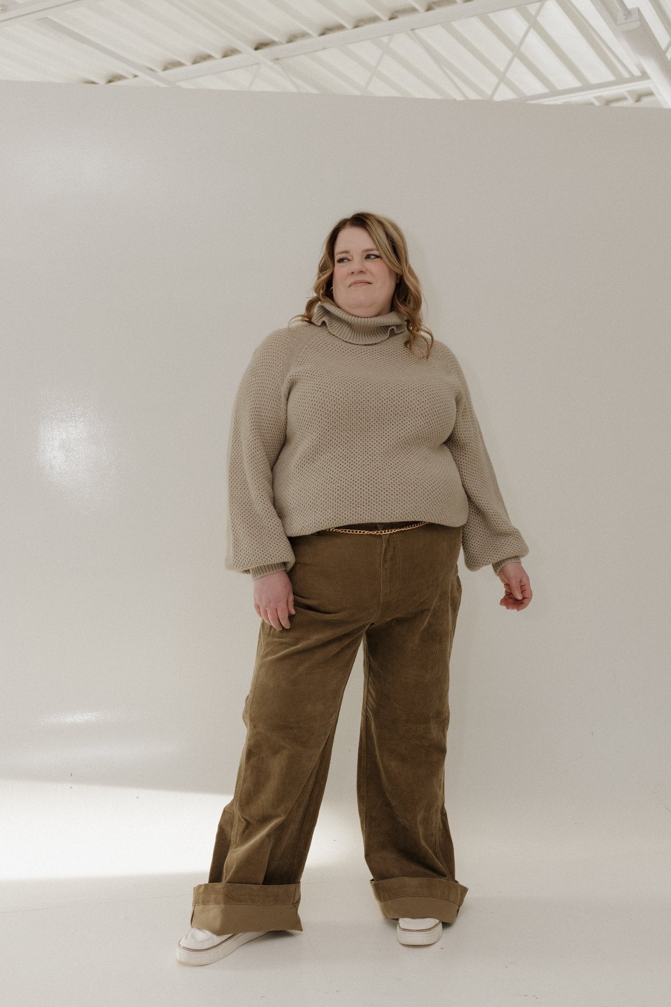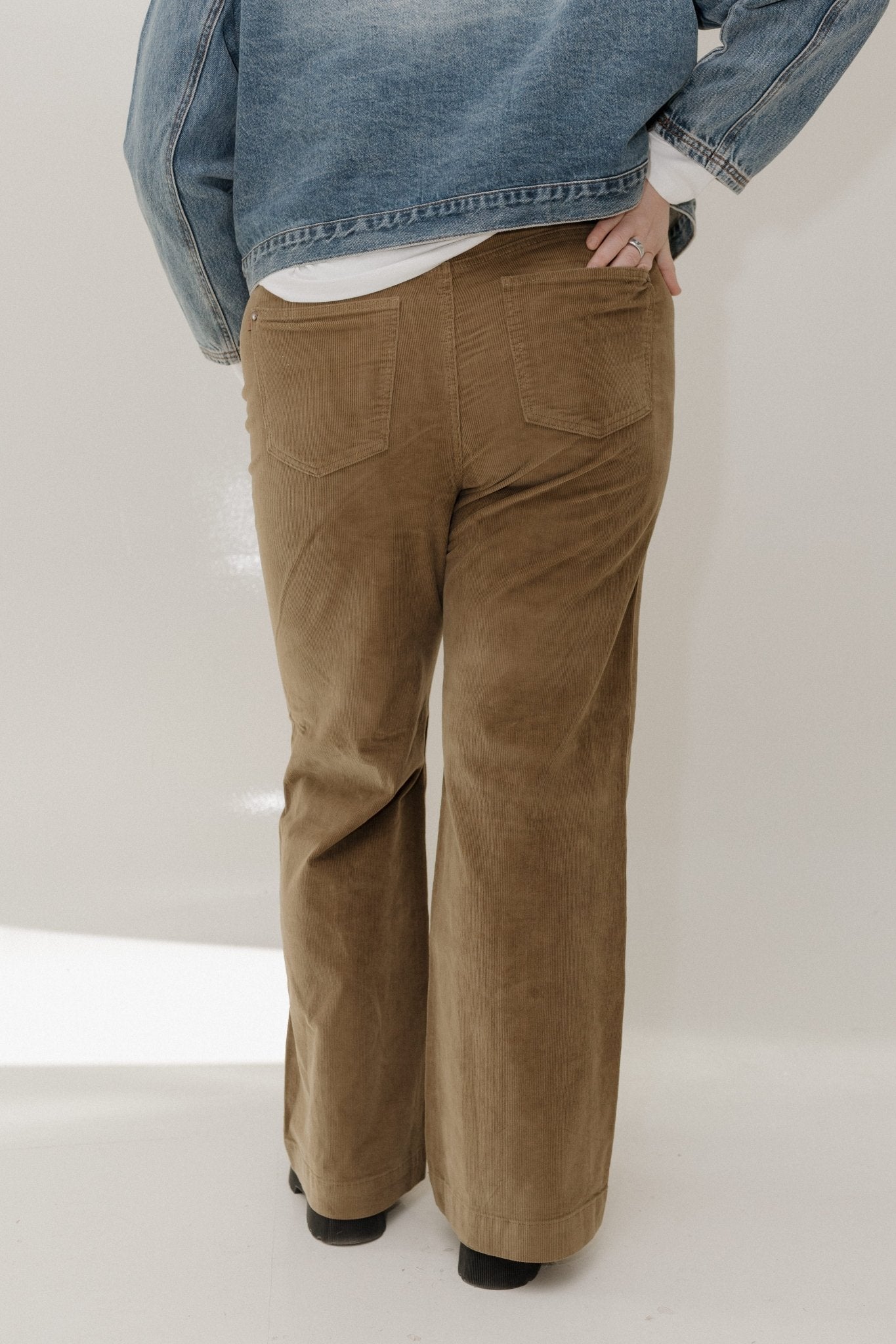 A smoothing 12.5” high rise, 33” inseam, and forward side seams work together to create a long, lean leg line, while retro-inspired welt pockets add a clean, tailored finish. The golden olive hue—a warm blend of olive drab, golden green, and earthy brown—is uniquely flattering on every skin tone and perfect for fall-forward styling.