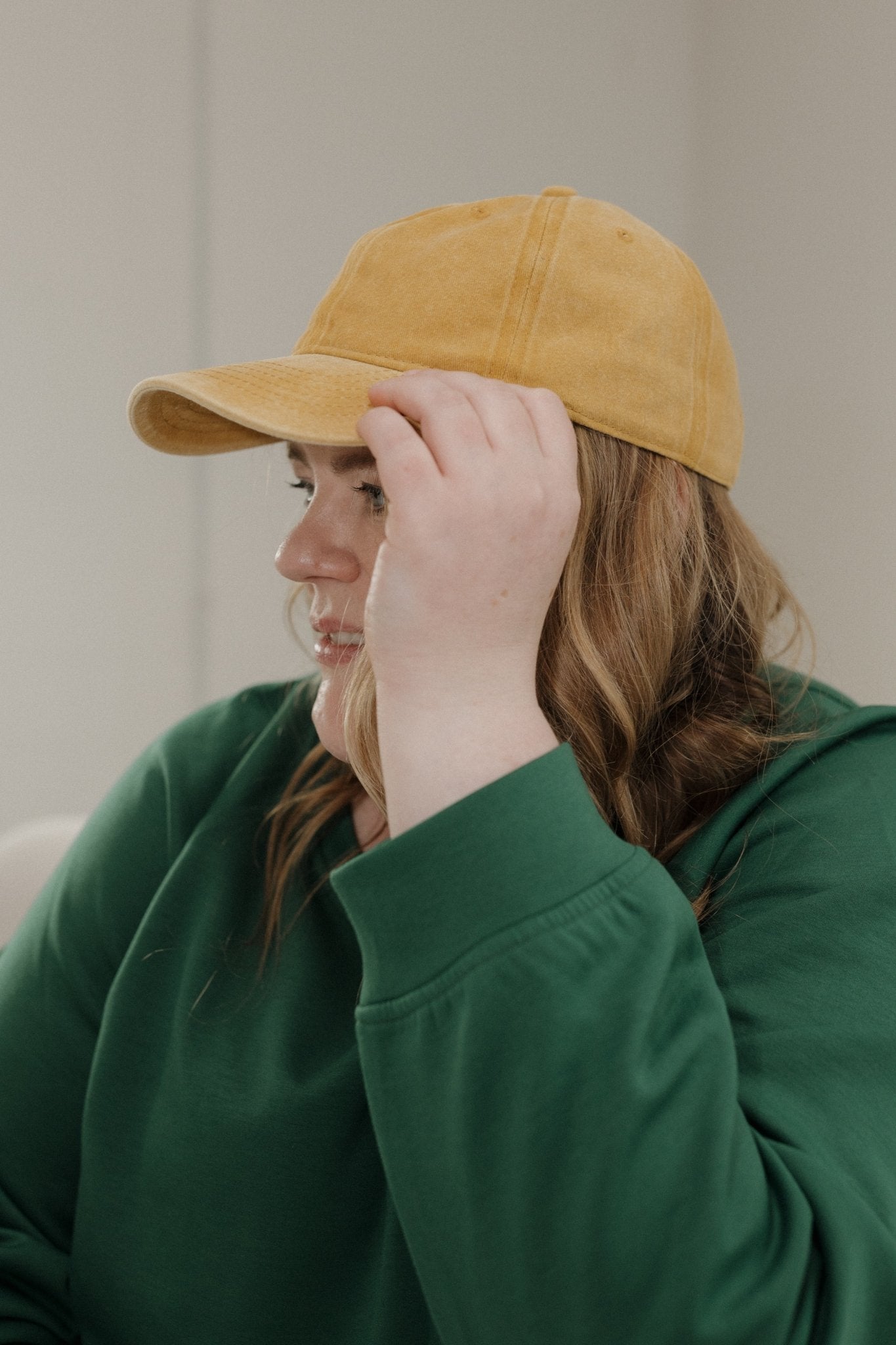 ACID WASHED BASEBALL CAP IN MUSTARD SEED