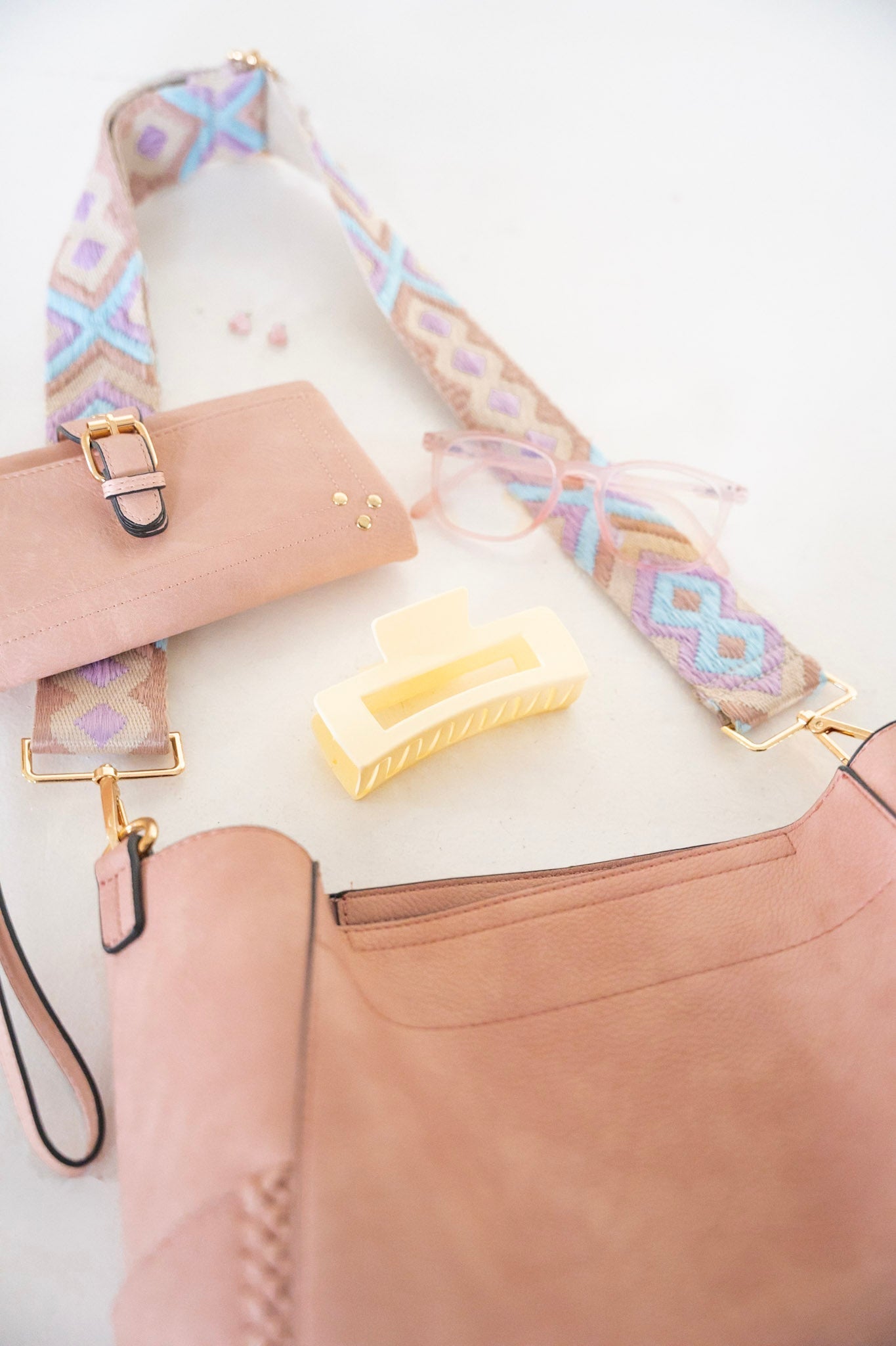 Take this bag from work to play! Has a detachable shoulder strap that you can use for work, and after work, switch to the fun detachable guitar shoulder strap. Perfect to put your planner, laptop, and all of your essentials inside! Wait for it! It also is a bag inside of a bag! Comes with a perfect-size clutch! Made out of super soft vegan faux leather.