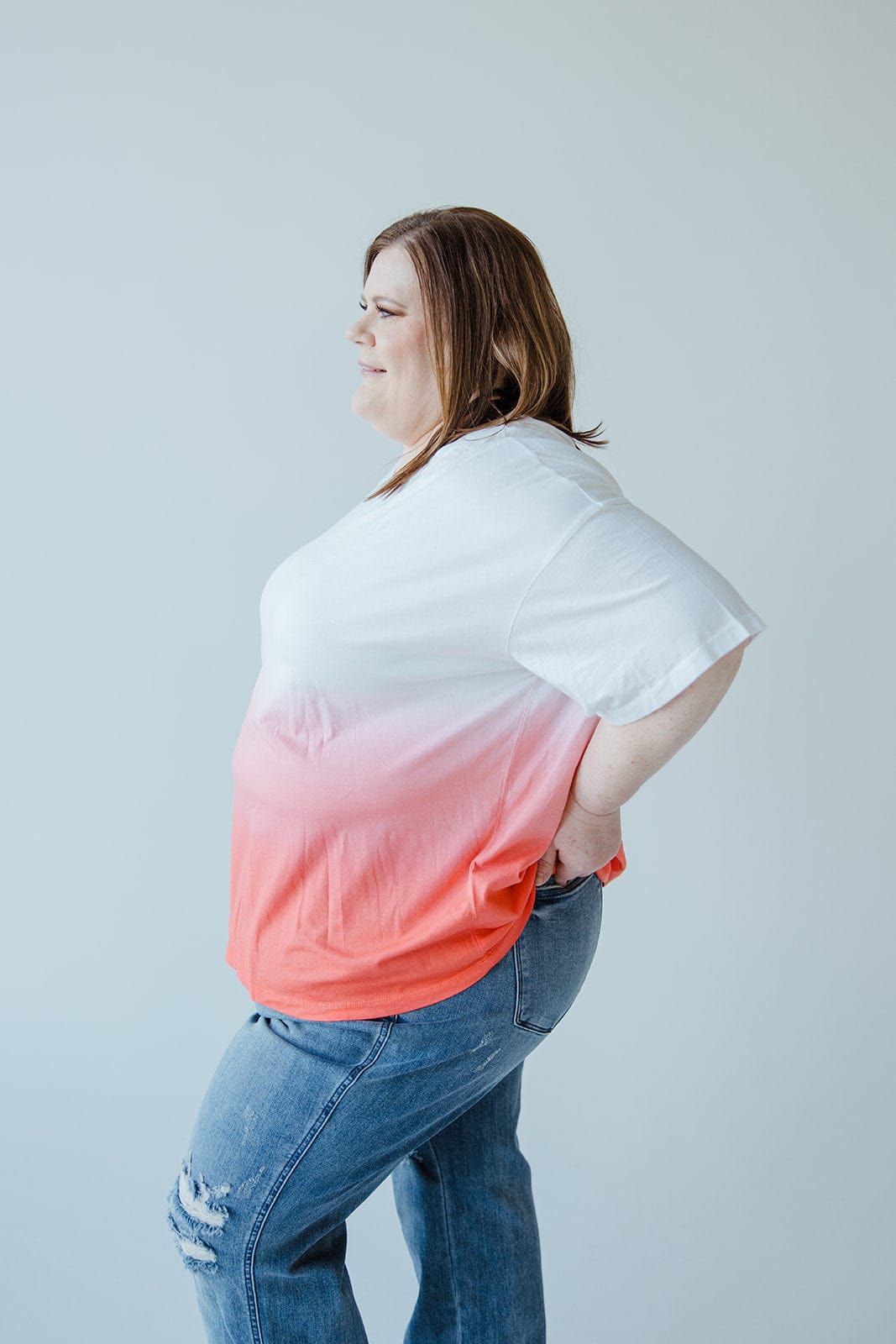Elevate your wardrobe with our Dip Dyed Tee. Made with soft, breathable cotton and a classic crew neck, this tee brings both comfort and style. Its fun color and playful dye add a touch of personality to any outfit. Experience the art of fashion with this exclusive piece. Fits true to size. We suggest going with your typical size. Leslie is wearing a size 18. Want more information about the model? Visit our Lovely Models page.