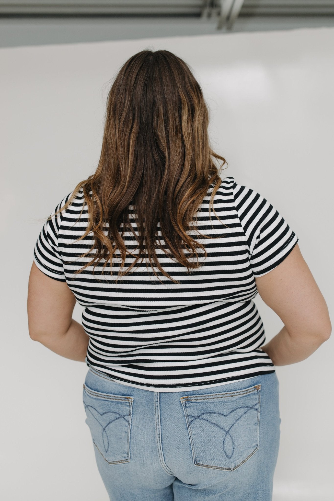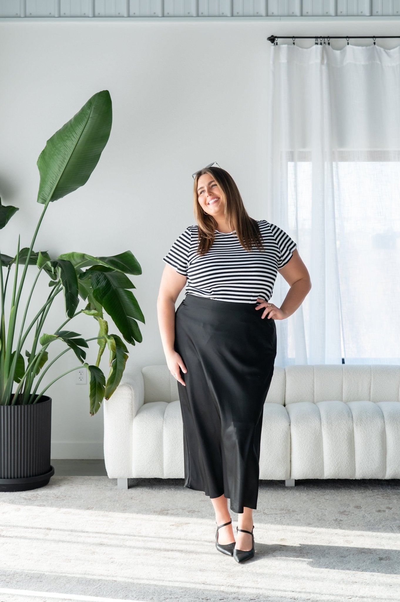 Say hello to your new favorite everyday essential! The Essential Short Sleeve Ribbed Crew Neck Tee in Ecru and Black is a staple piece for stylish curvy women’s clothing—designed to empower, flatter, and move with you through your day.