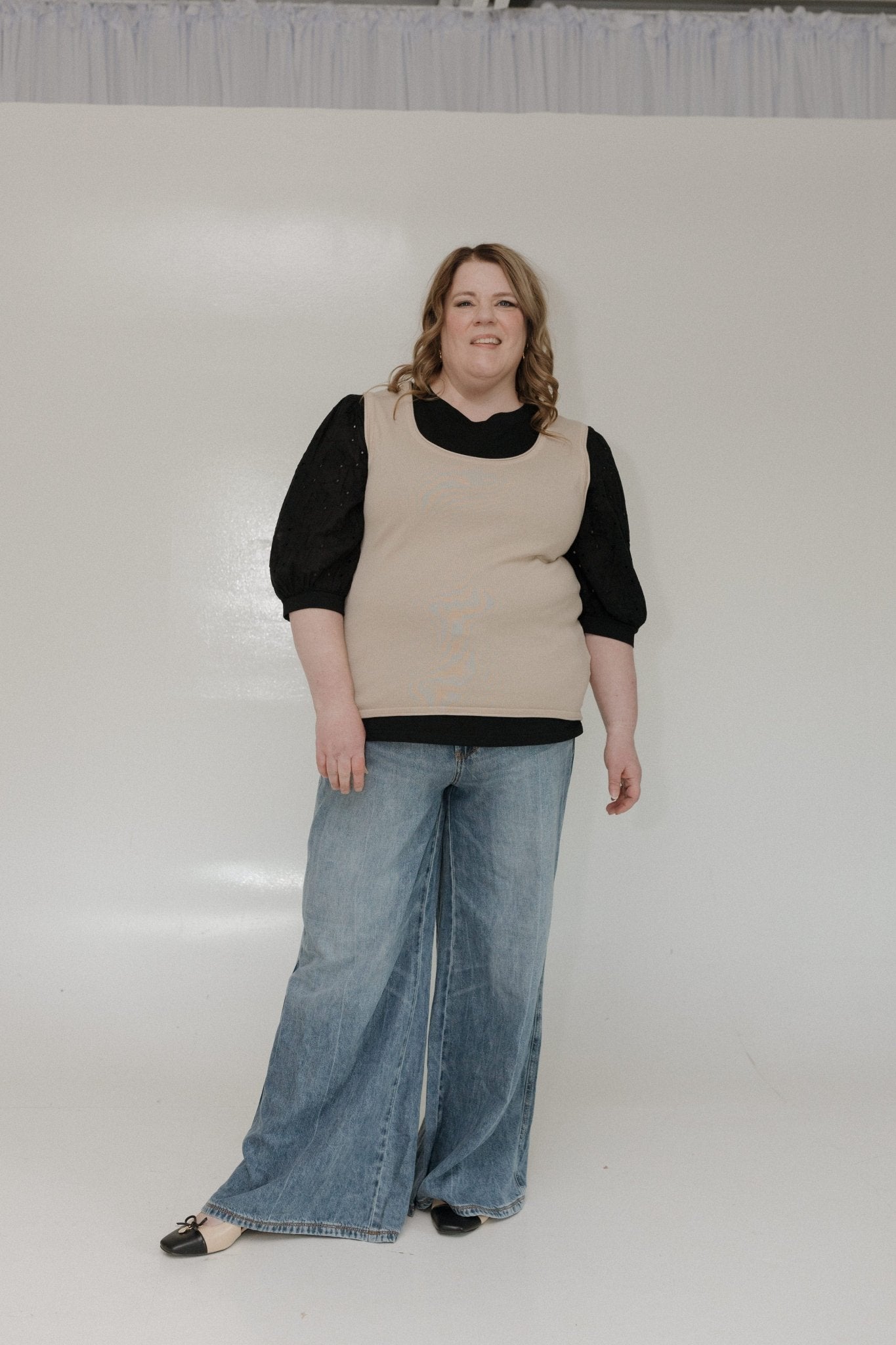 Classic, feminine, and effortlessly flattering, the Eyelet Lace 3/4 Sleeve Knit Blouse in Black is your new elevated everyday essential. Designed for mid & plus-size women, this versatile top combines comfort, sophistication, and style for any occasion.