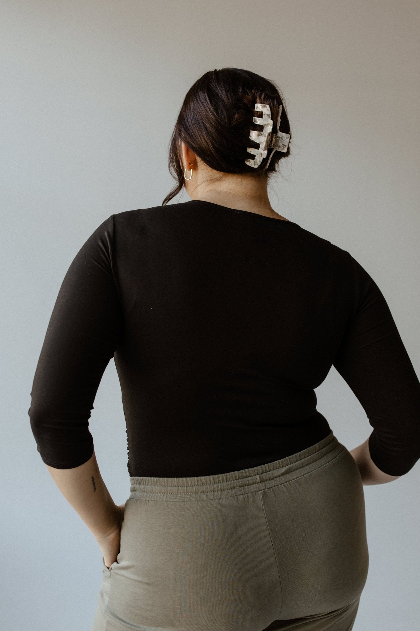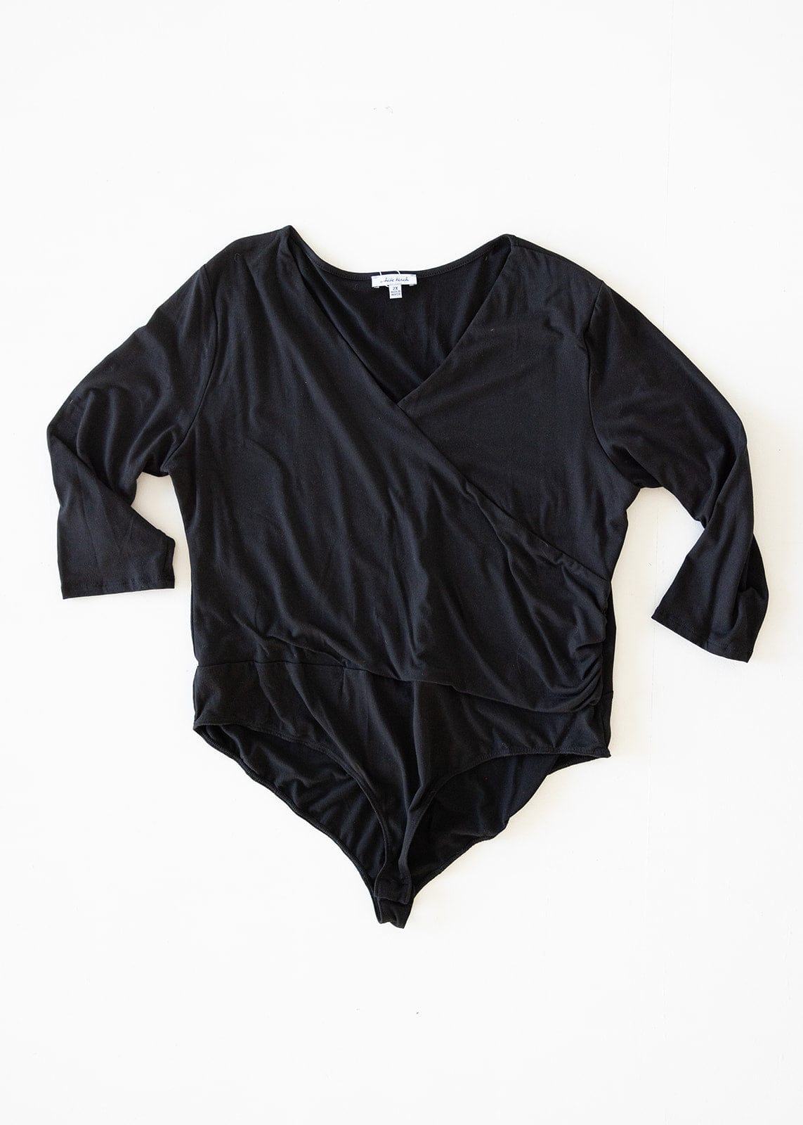 Look confidently chic in this sleek Faux Wrap Bodysuit. A buttery soft knit in classic black ensures a smooth, comfortable fit while the side ruching gives your outfit a stylish detail that turns heads. Make sure to add this chic piece to your wardrobe stat! Fits true to size. We suggest going with your typical size. Alex is wearing a size 1x. Want more information about the model? Visit our Lovely Models page.