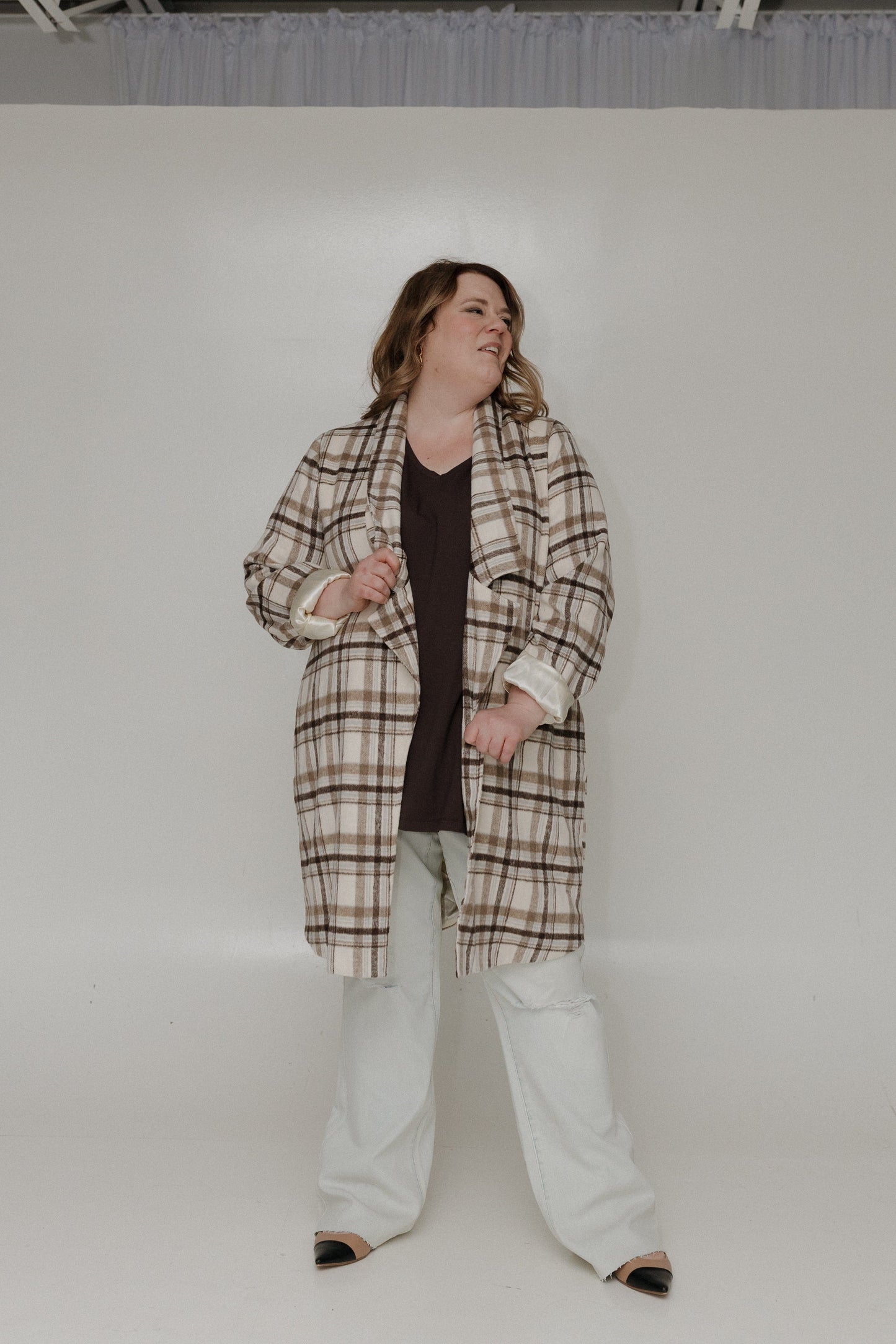Step into effortless elegance with our Lightweight Plaid Midi Blazer, a timeless piece perfect for year-round styling. This versatile blazer features a classic plaid pattern in light mocha, brown, and sky blue, offering a sophisticated pop of color for any outfit. The open-front bodice and long sleeves create a flattering silhouette that pairs seamlessly with skirts, trousers, or jeans.