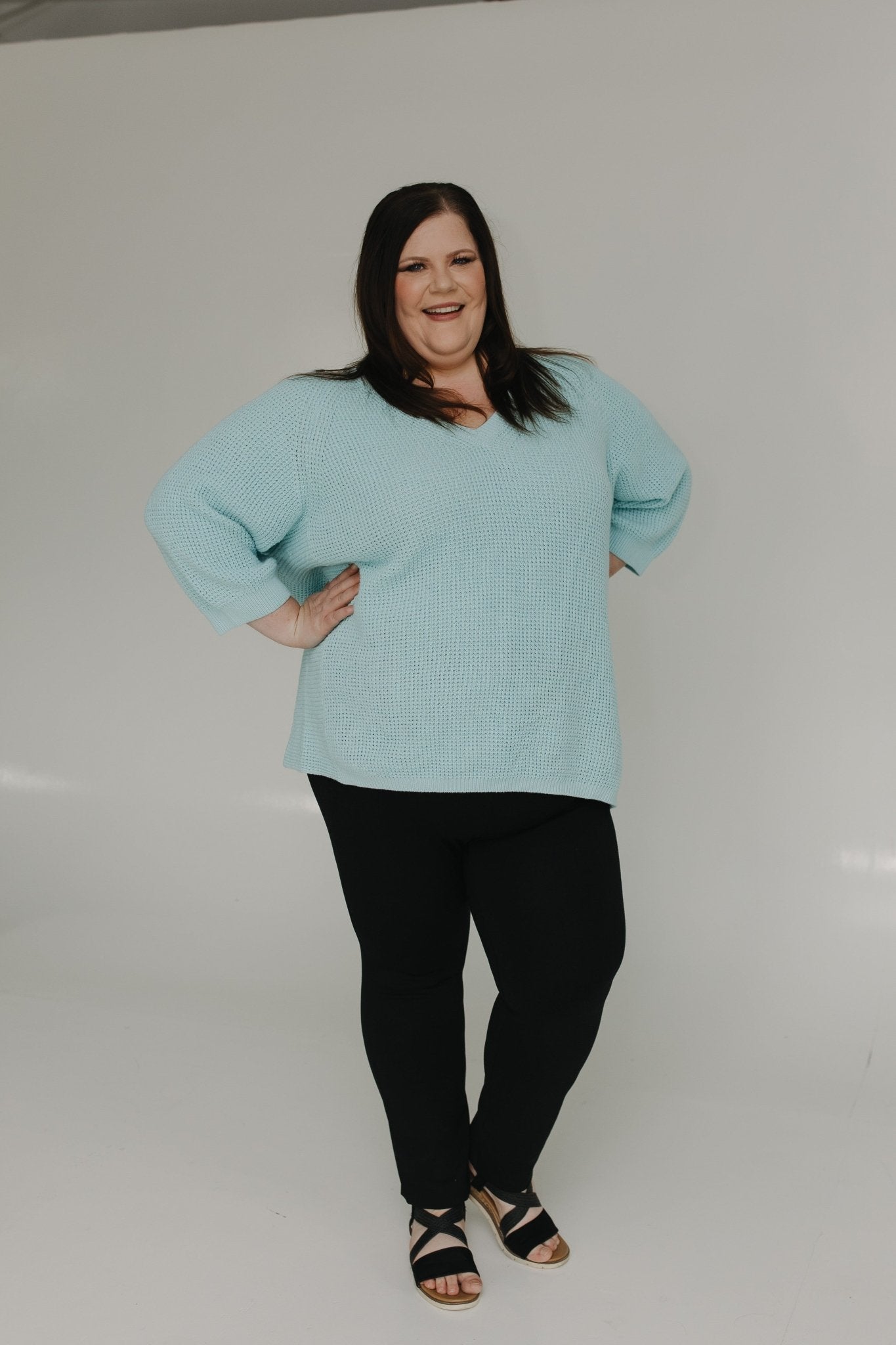 OPEN WEAVE SWEATER IN BEACH GLASS
