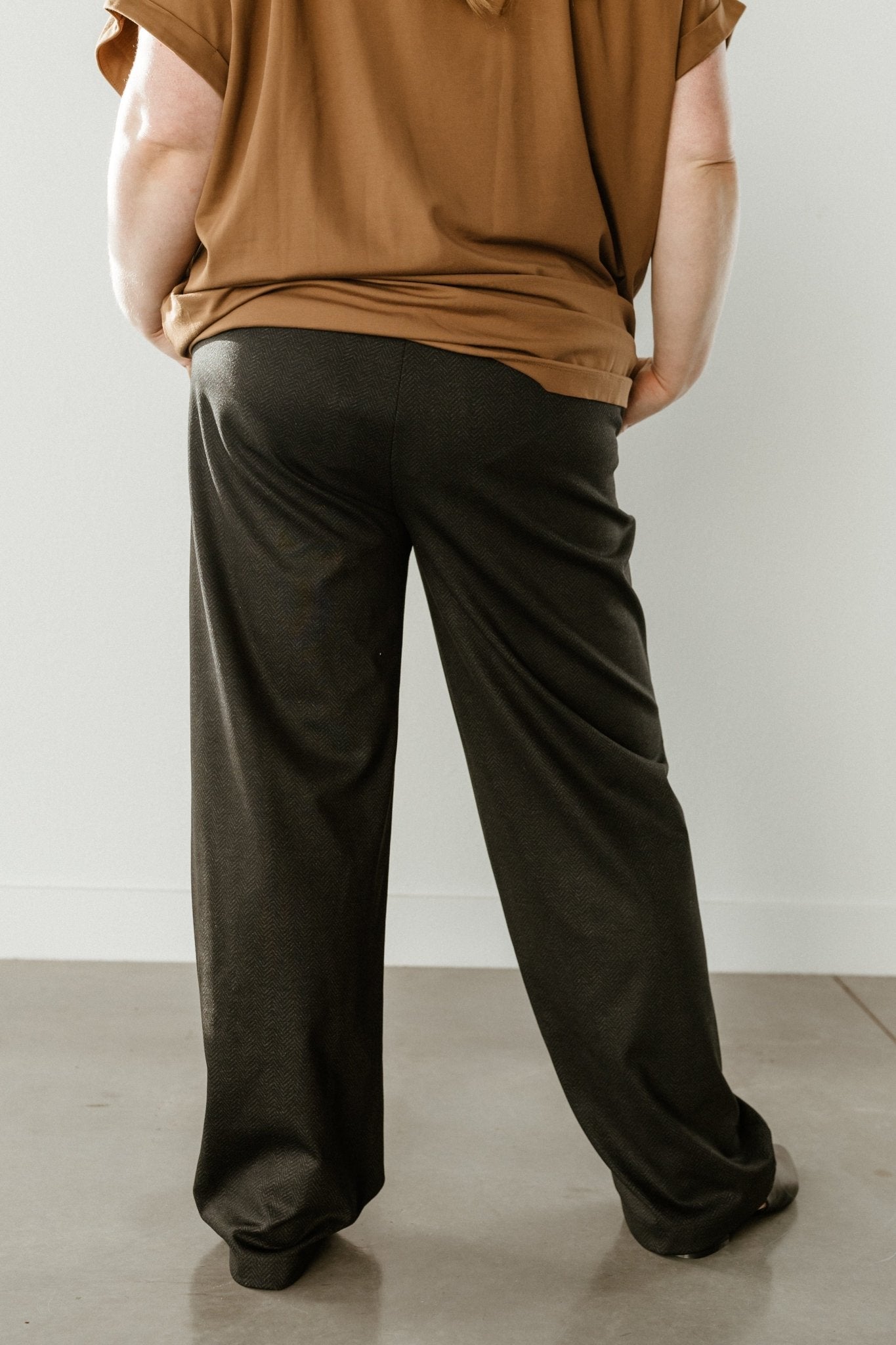 WIDE LEG TROUSER WITH BLACK AND GREY CHEVRON PRINT