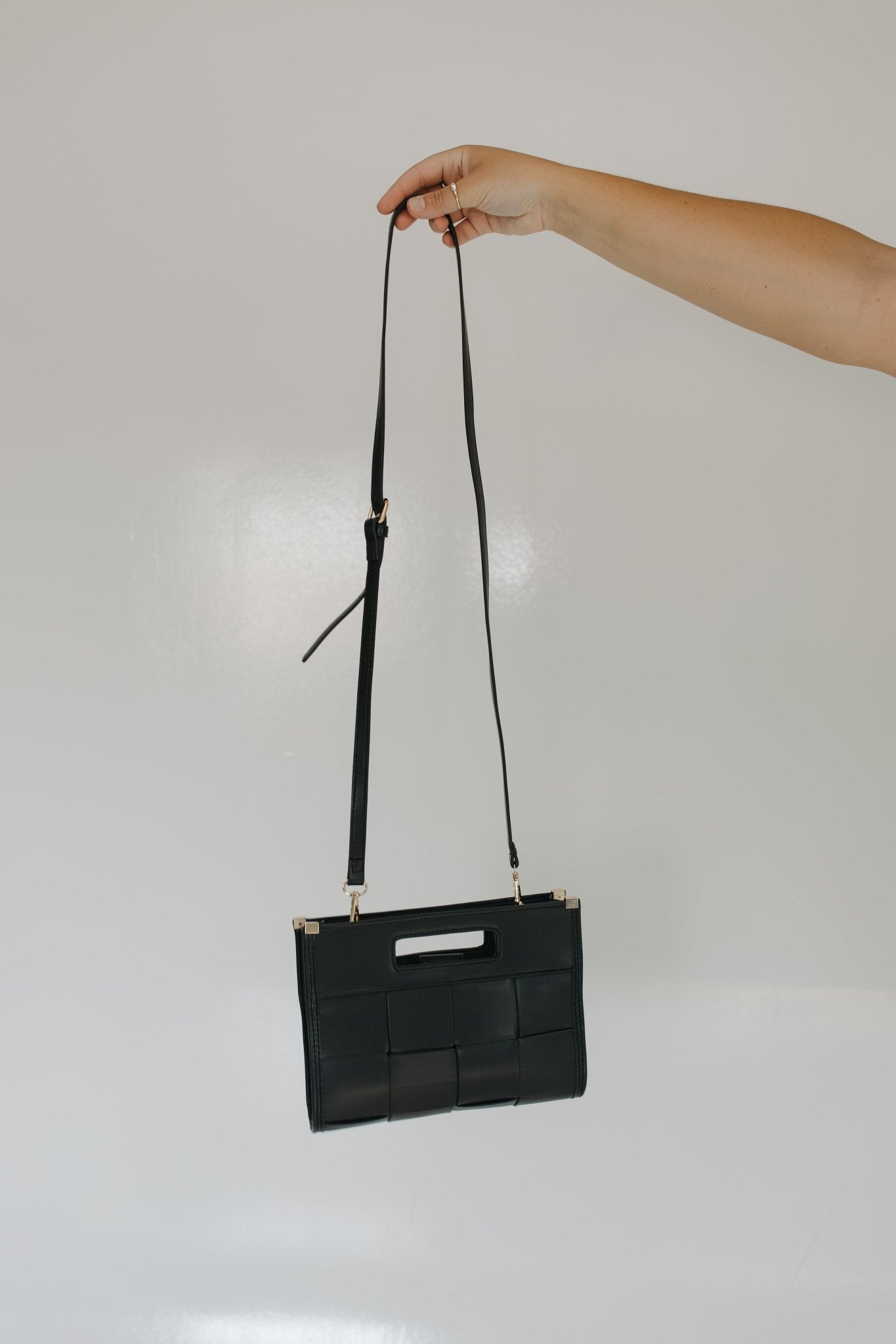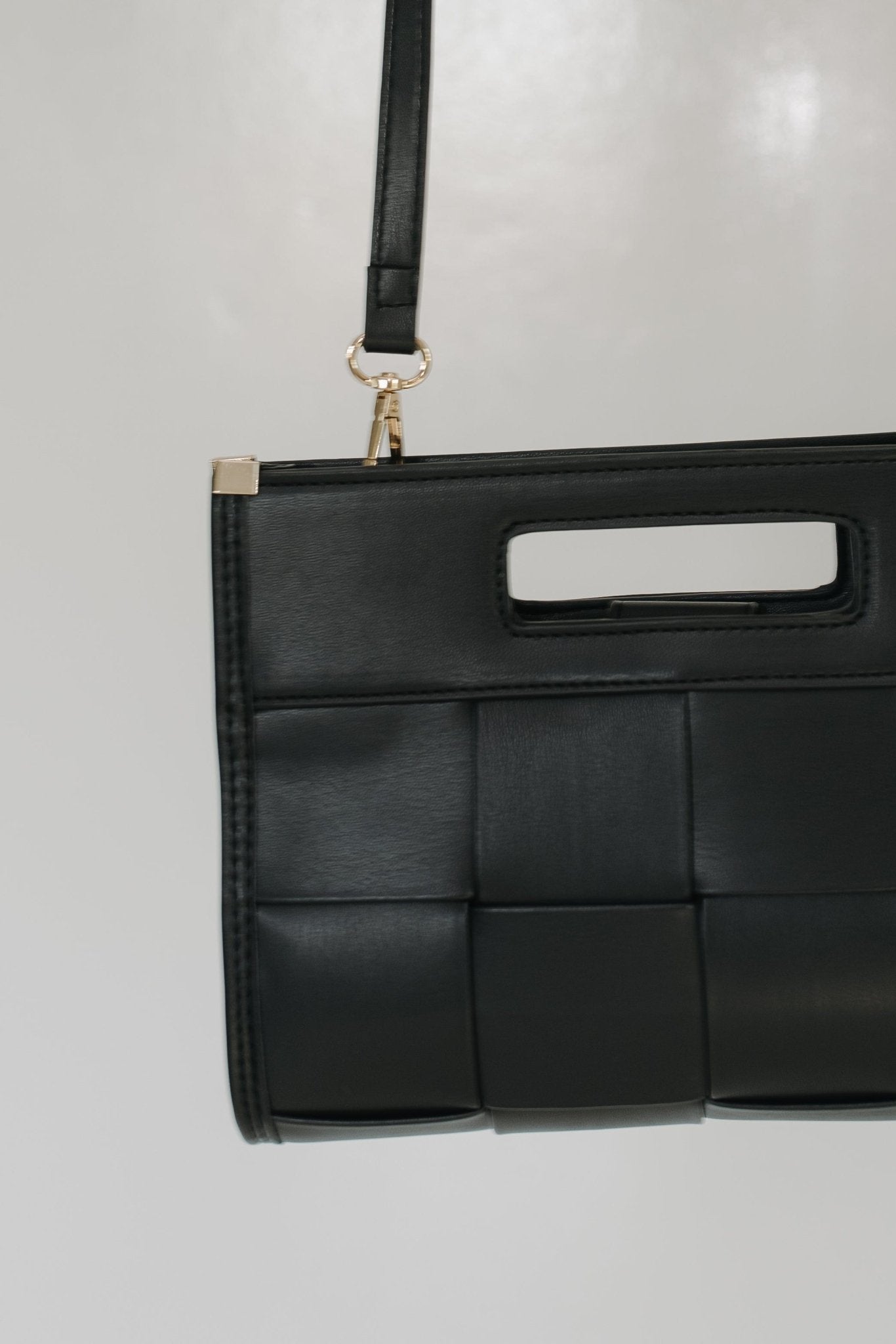 BLACK WOVEN FAUX LEATHER CROSSBODY CLUTCH