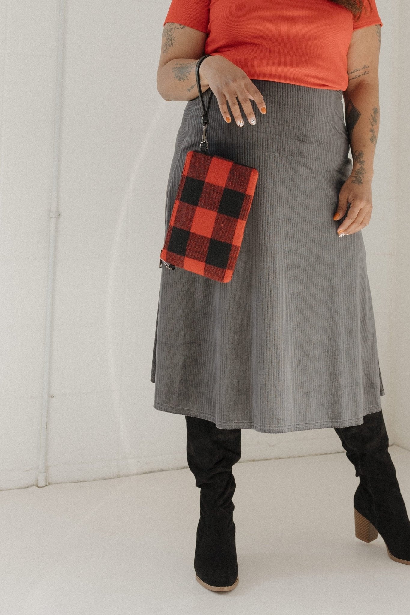 Add a playful touch to your winter wardrobe with our Buffalo Check Clutch — the perfect mix of classic style and modern function. Crafted from durable fabric buffalo check, this chic clutch features a zippered main compartment, detachable wristlet strap, and removable crossbody strap, giving you multiple ways to wear it.
