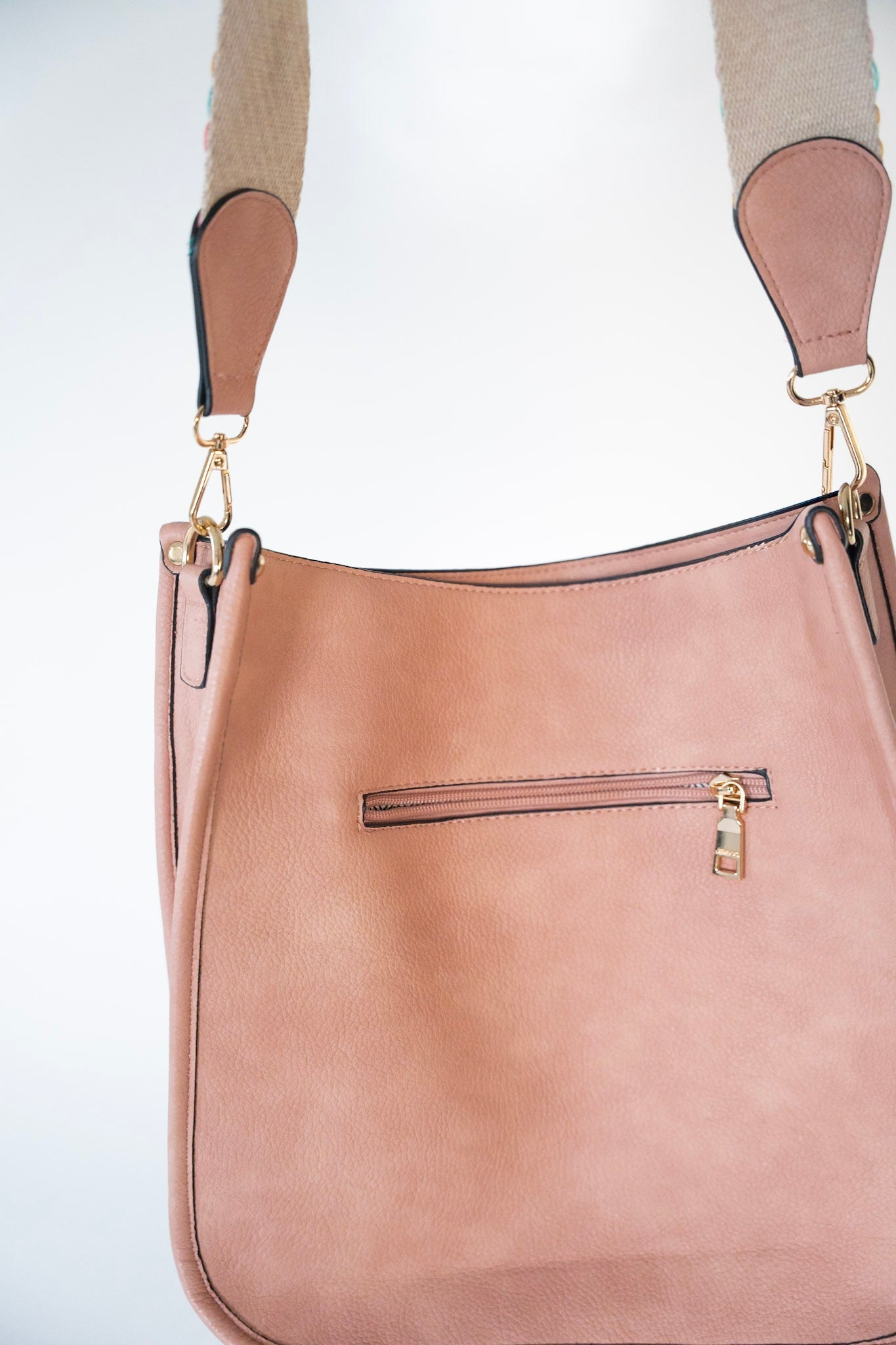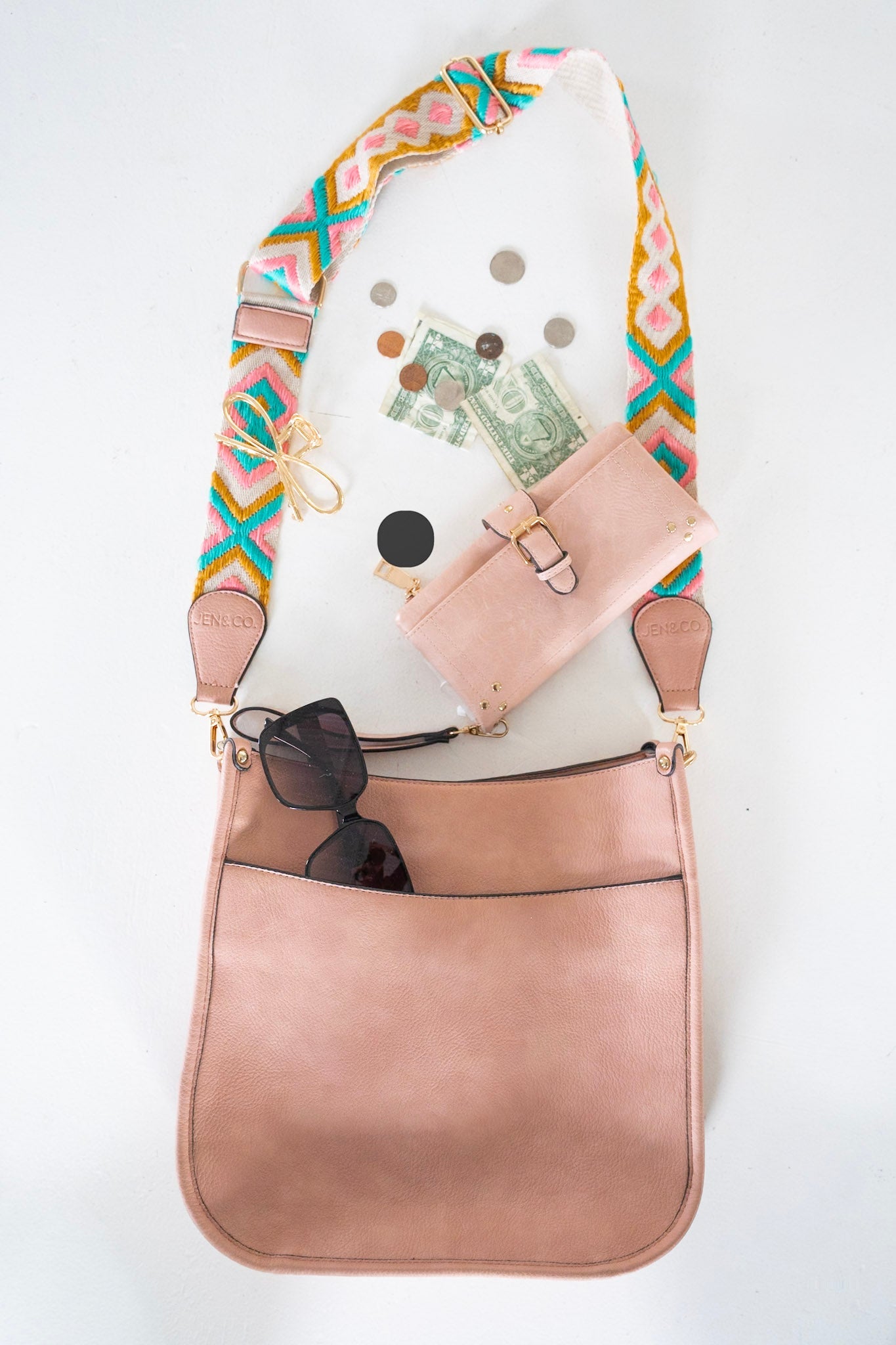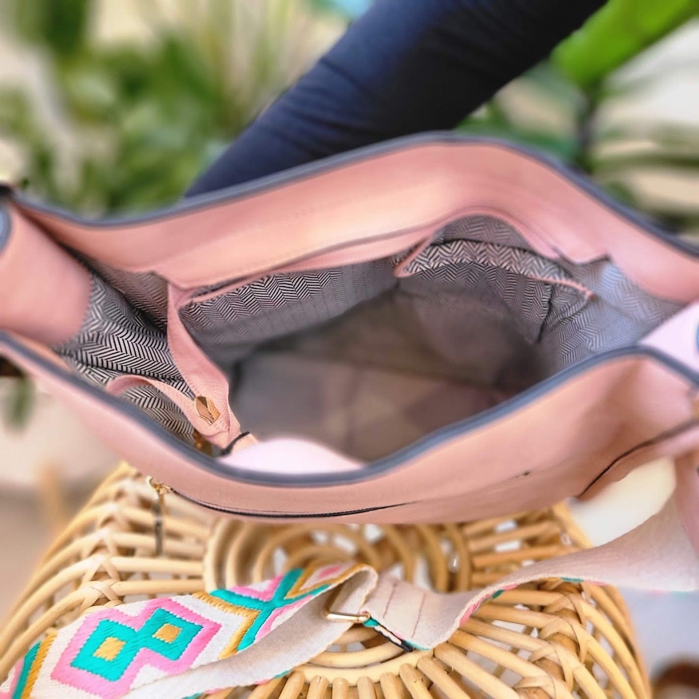 Add a touch of sophistication and fun to any outfit with this crossbody satchel with this fun diamond pattern guitar strap! It has a large open pocket at the top with zipper pockets and empty pockets in the center, a wide crossbody strap, and is made out of vegan-faux leather. The fun color adds a pop of color to any outfit!