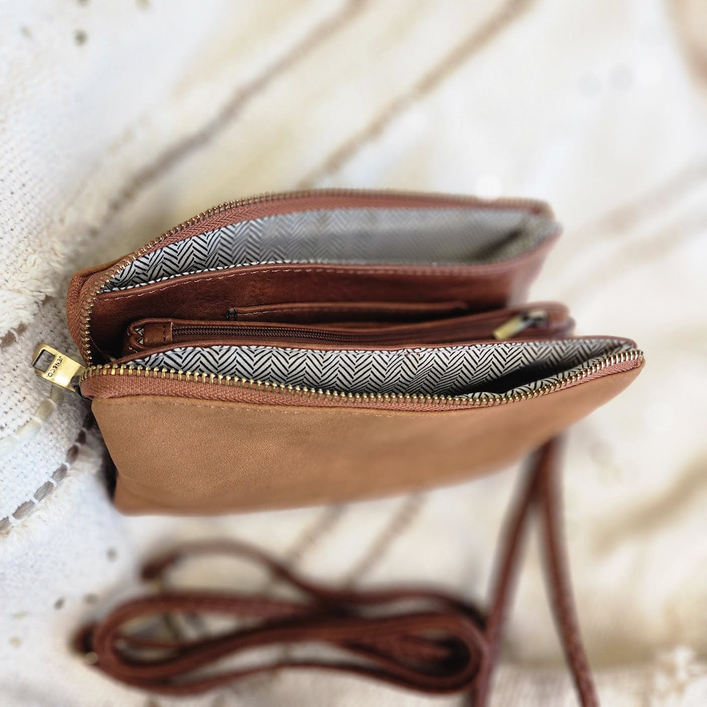 FAUX SUEDE CLUTCH IN WARM BROWN