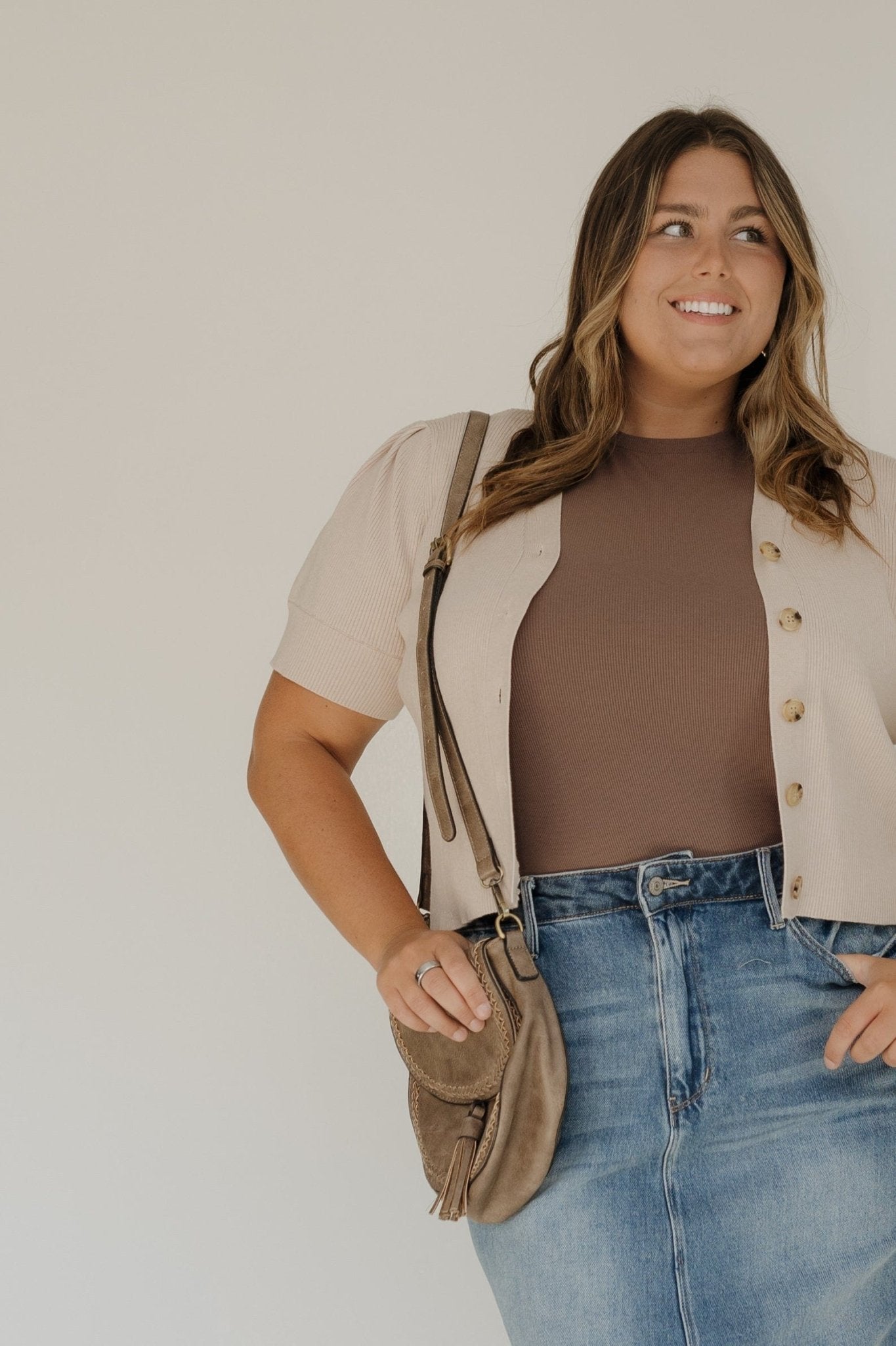 ROUND MEDIUM SATCHEL WITH STITCH AND TASSEL DETAIL IN CLAY