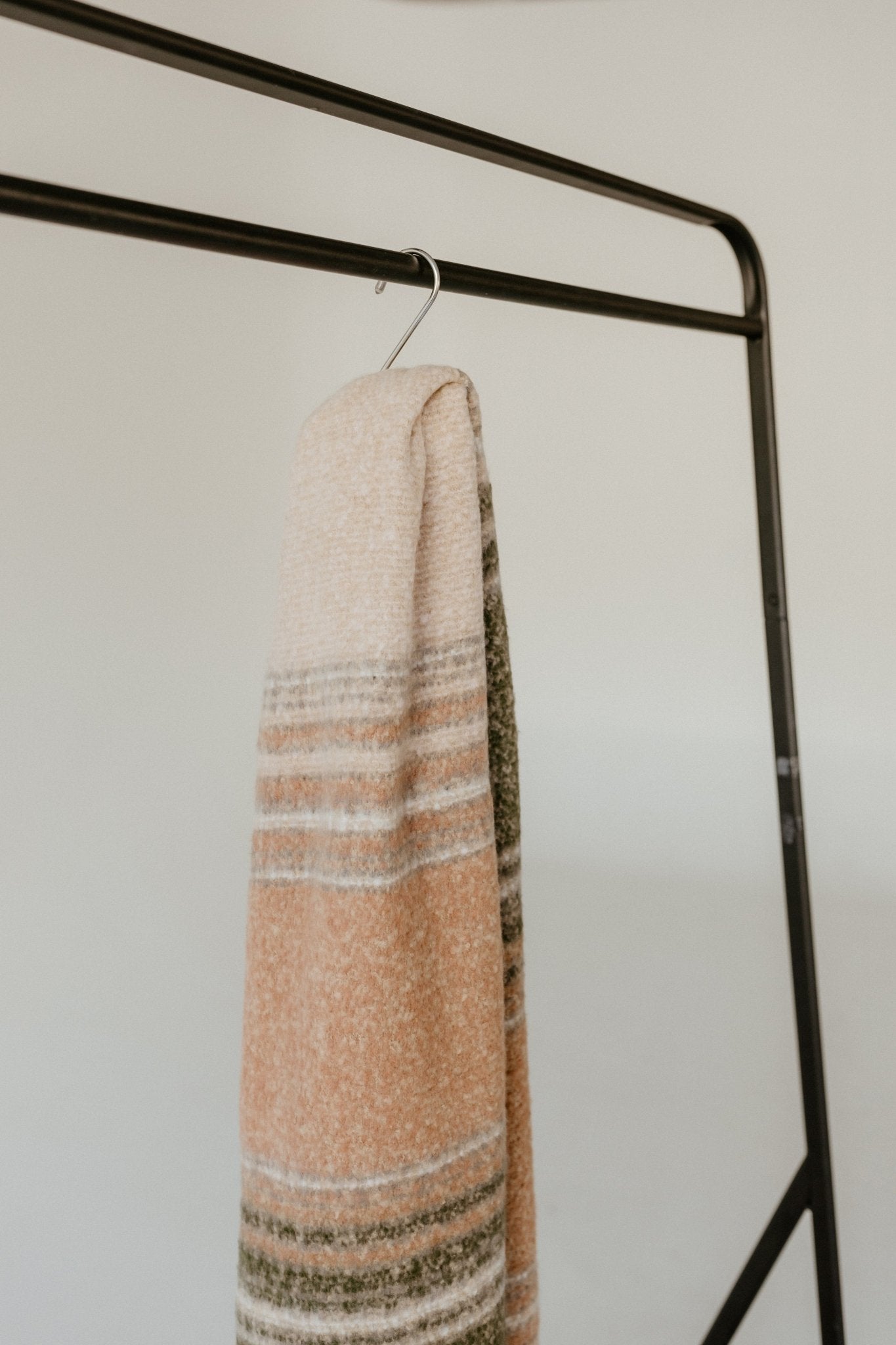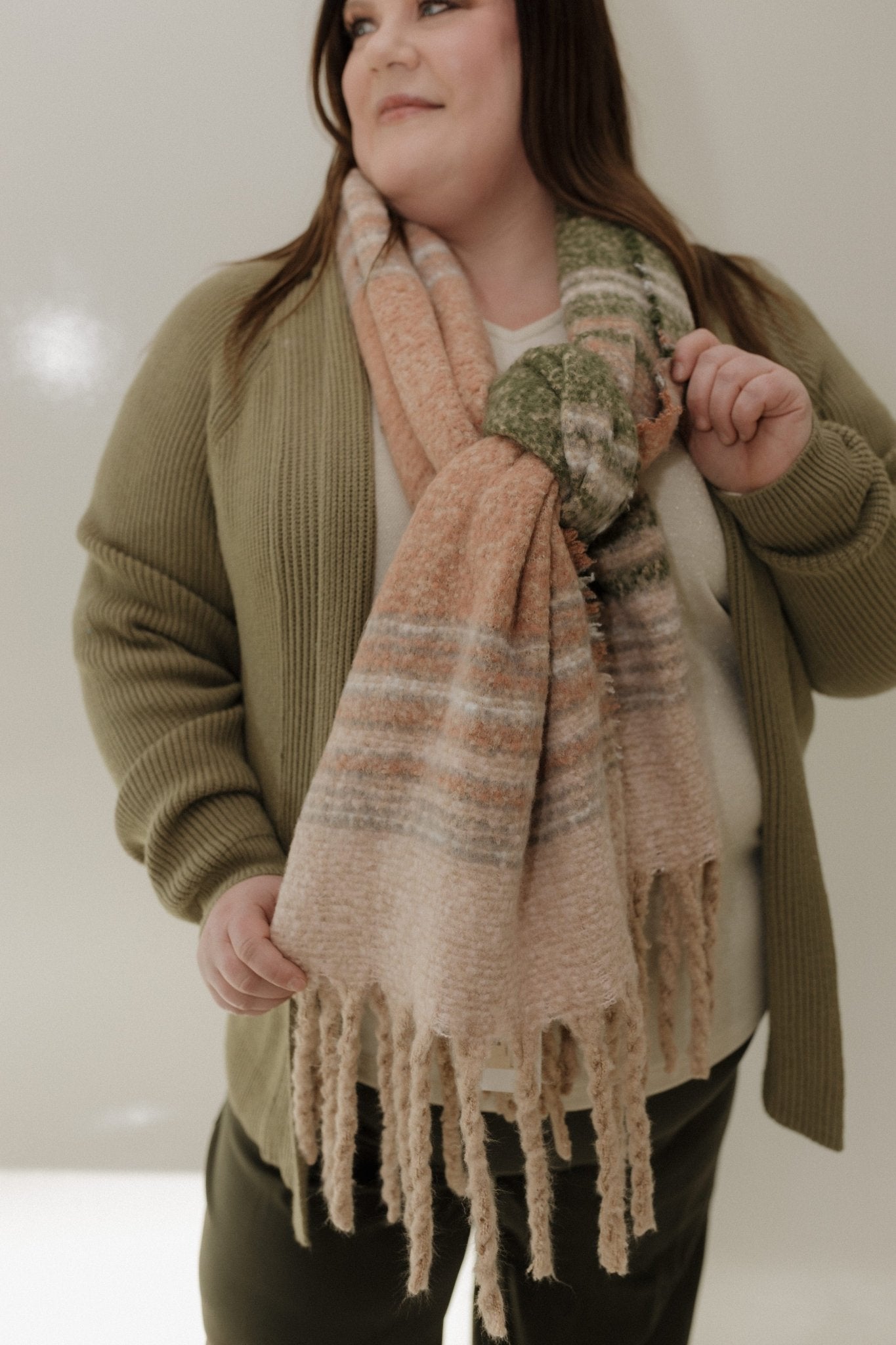 SOFT NUBBY SCARF WITH FRINGE IN PINK AND GREEN