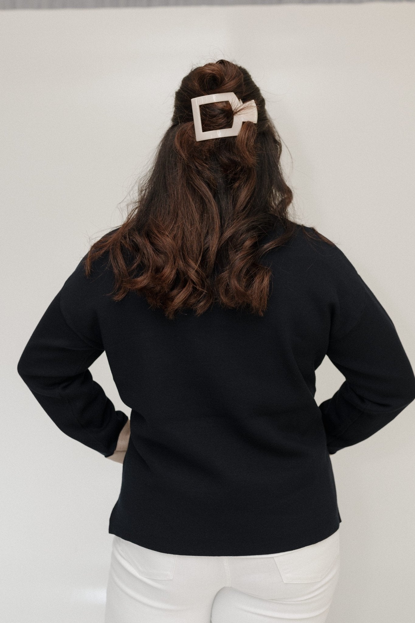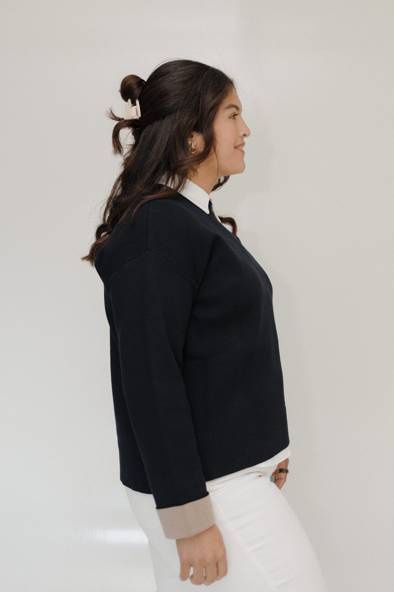 The Classic Crew Neck Sweater with Cuff Detail in Deep Navy is your new go-to for cozy sophistication. Crafted from a luxe knit blend (73% Viscose, 27% Polyester), this sweater offers a soft feel with just the right amount of structure, making it perfect for both casual and elevated looks.