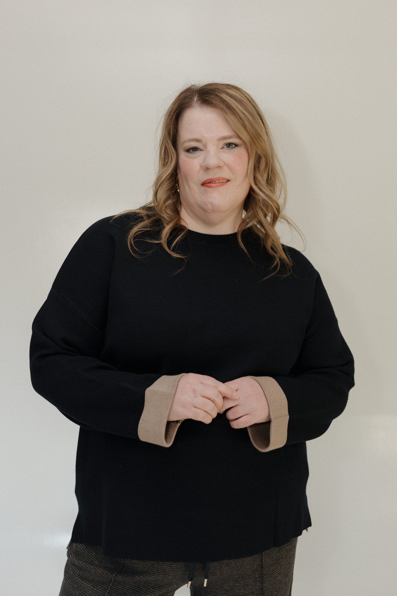 Designed with a classic crew neckline, mocha-colored cuff details, and a subtle side slit hem for ease of movement, this sweater combines timeless design with thoughtful touches. Pair it with jeans, trousers, or skirts for a versatile style that works season after season. Available in inclusive sizes 8–28, it’s a confidence-boosting essential for every wardrobe.