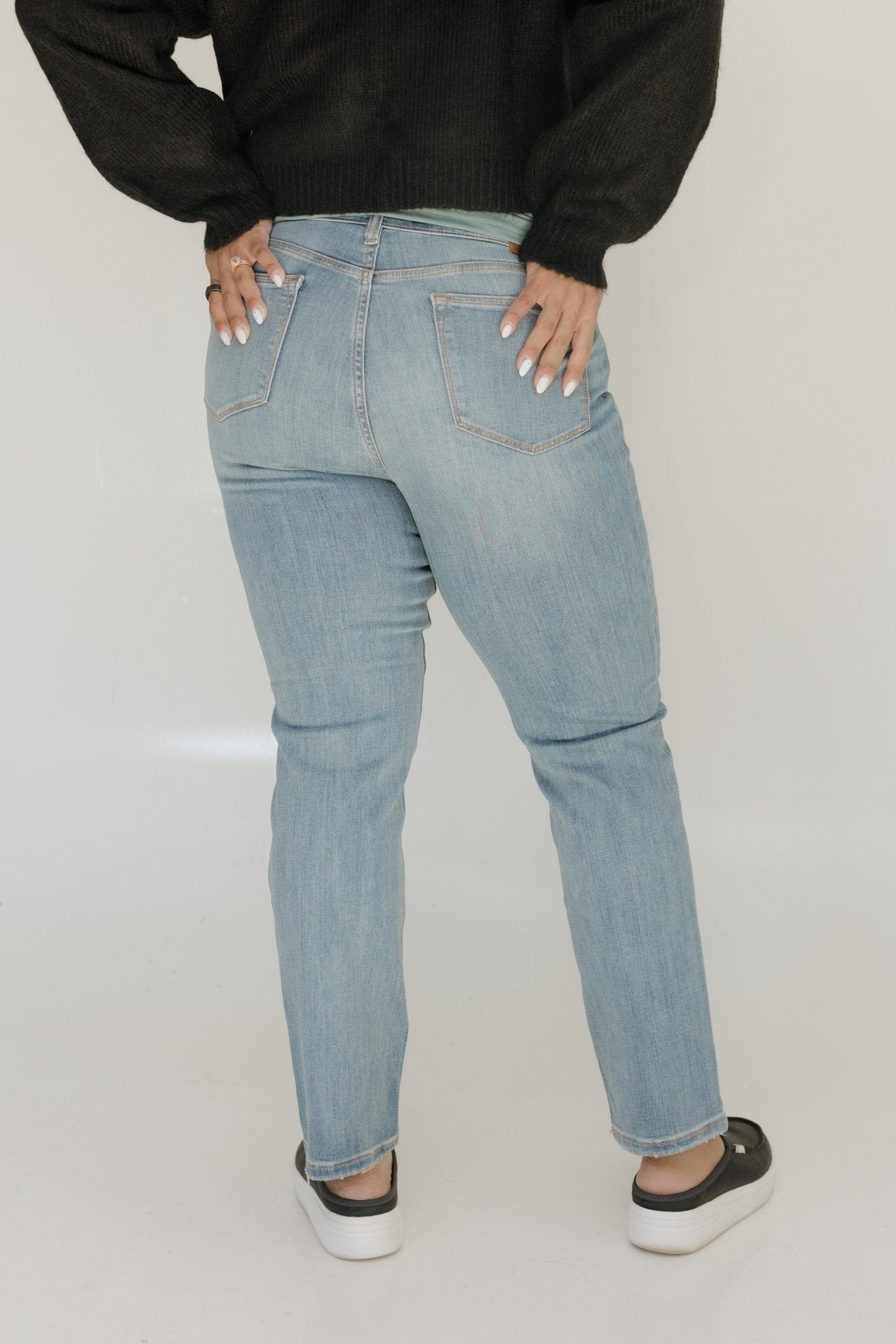 JUDY BLUE HIGH WAIST STRAIGHT LEG JEANS IN LIGHT MEDIUM WASH